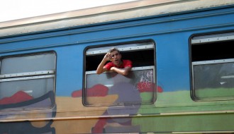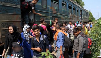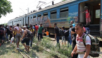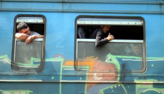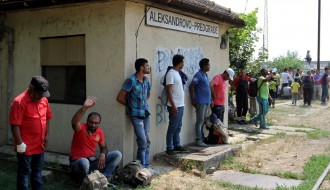Migranti napuštaju voz (železnička stanica Aleksandrovo)