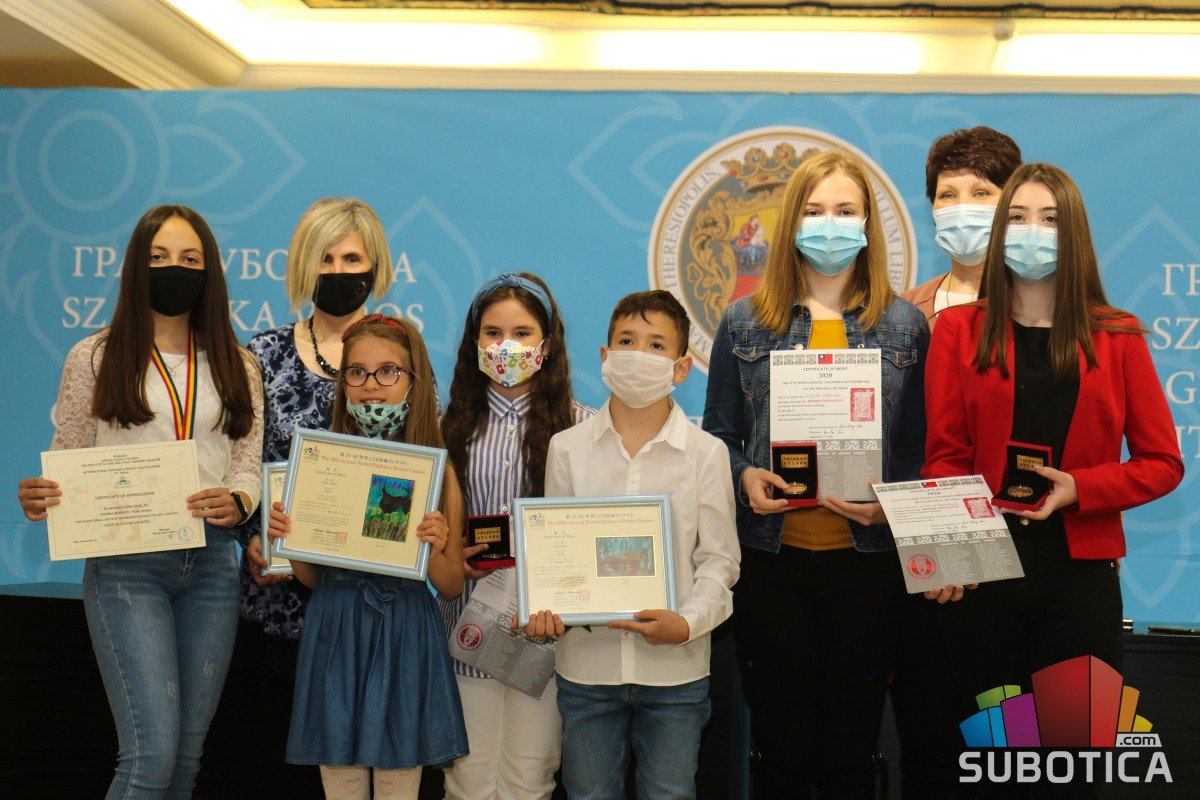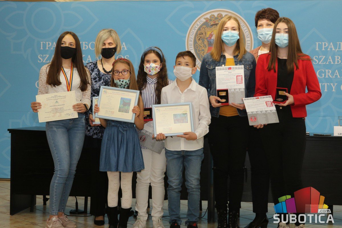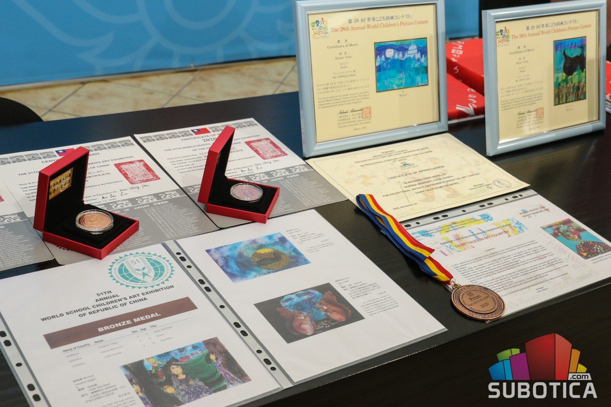 Uručenje nagrada polaznicima Likovne radionice „EmArt“ i učenicima OŠ „Jovan Jovanović Zmaj“ osvojenim na međunarodnim likovnim konkursima u Kini, Rumuniji i Japanu.