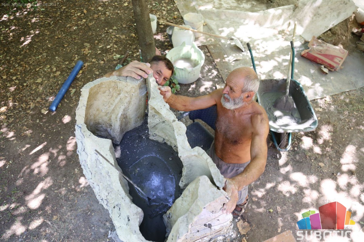 Izlivanje betonske skulpture nekadašnjeg predsednika SFRJ Josipa Broza Tita u prirodnoj veličini, na postolju. Skulpturu će besplatno izraditi subotički vajar Franjo Mačković, uz pomoć volontera koji trenutno borave u Mini Jugoslaviji. Promocija nove skulpture biće u subotu.
