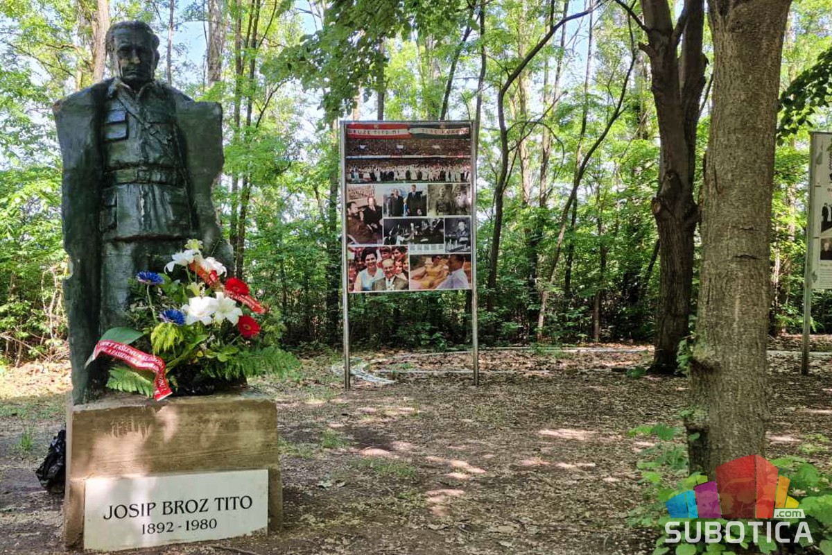 Polaganje venaca na bistu Josipu Brozu Titu u Mini Jugoslaviji
