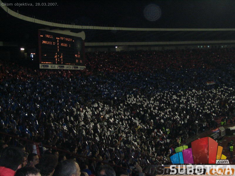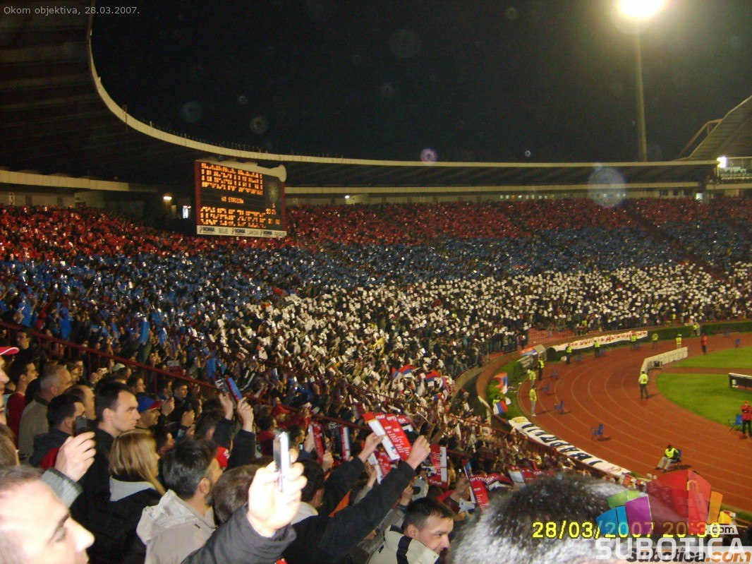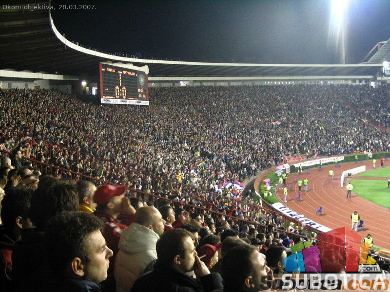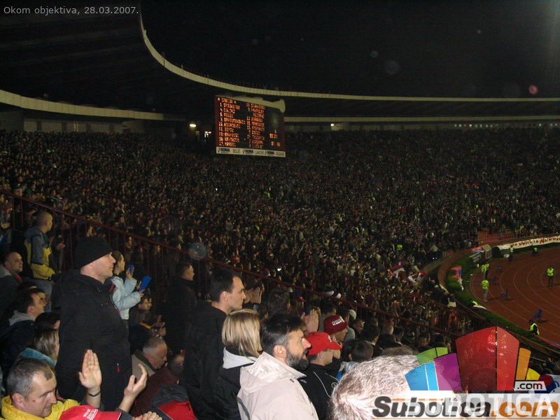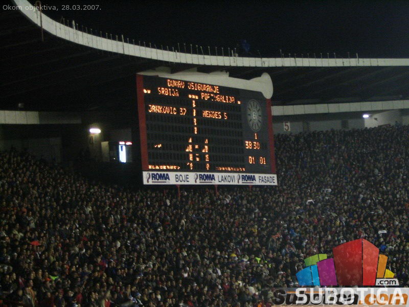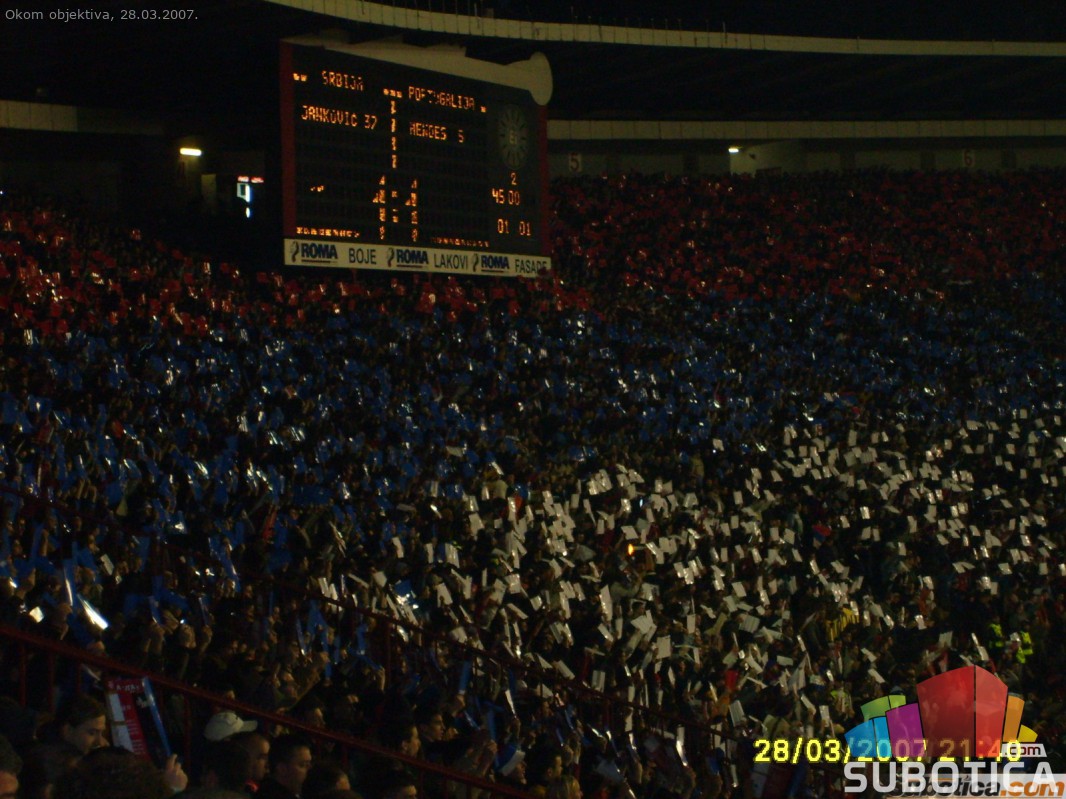 Fudbal, stadion Marakana, Kvalifikacije za Evropsko prvenstvo: Srbija - Portugal (1:1), 51.300 gledalaca<br><a href="/download/video/okom_objektiva/SRB-POR_intoniranje_himne.wmv"> Stadion - intoniranje himne (1.7MB wma)</a>