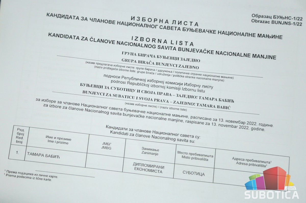 Predstavljena lista „Bunjevci za Suboticu i svoja prava-zajedno! Tamara Babić“