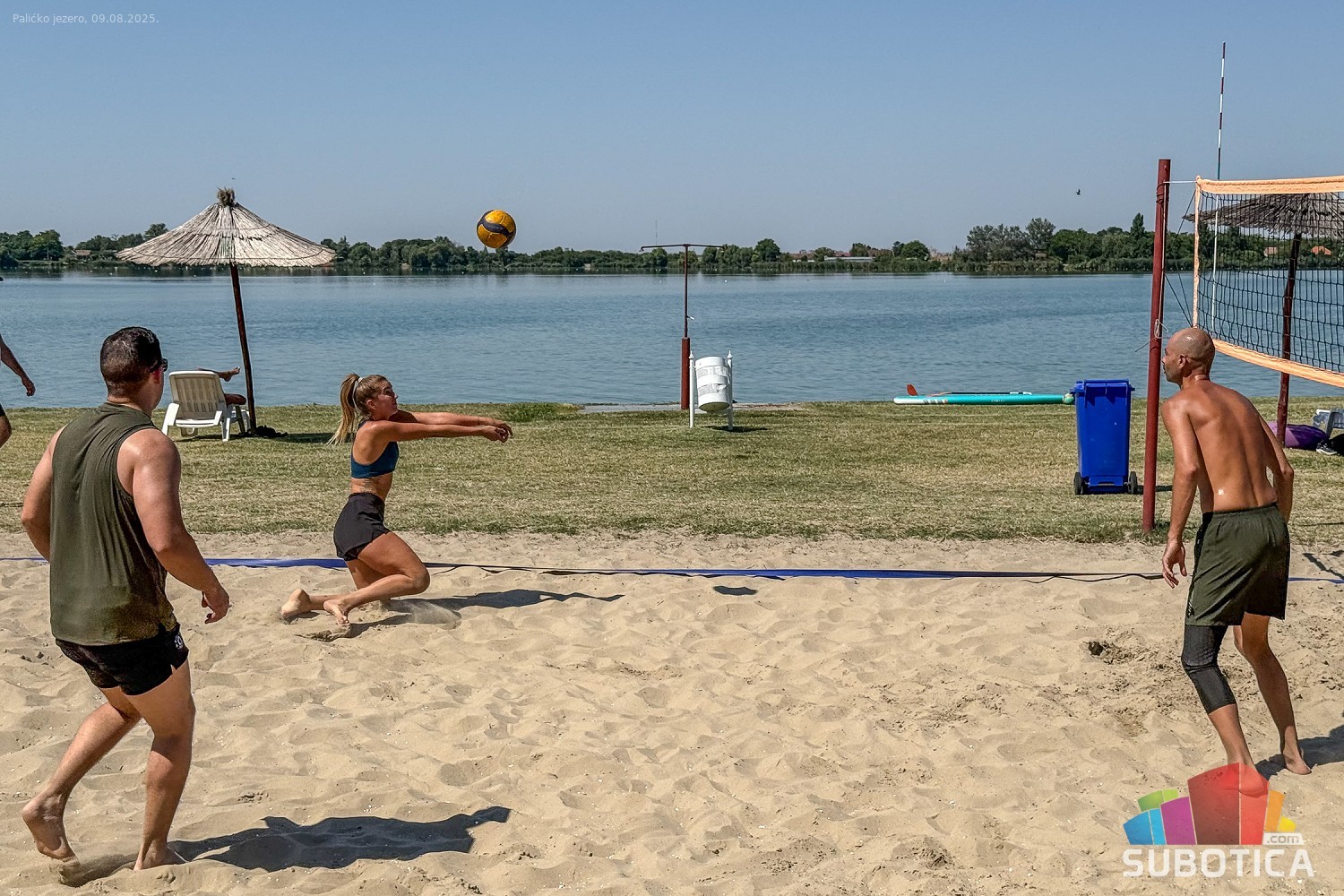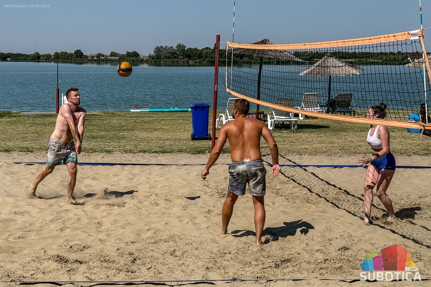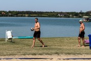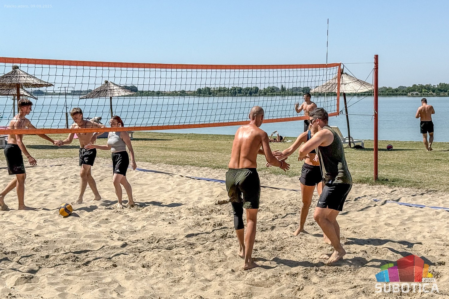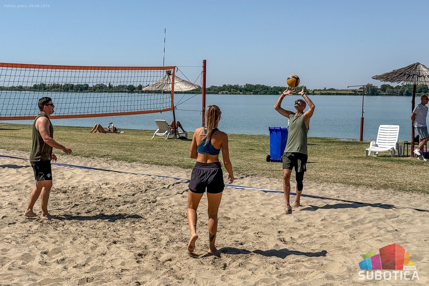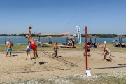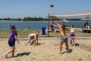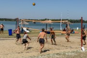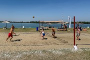 Odbojka na pesku na plaži uz jezero