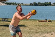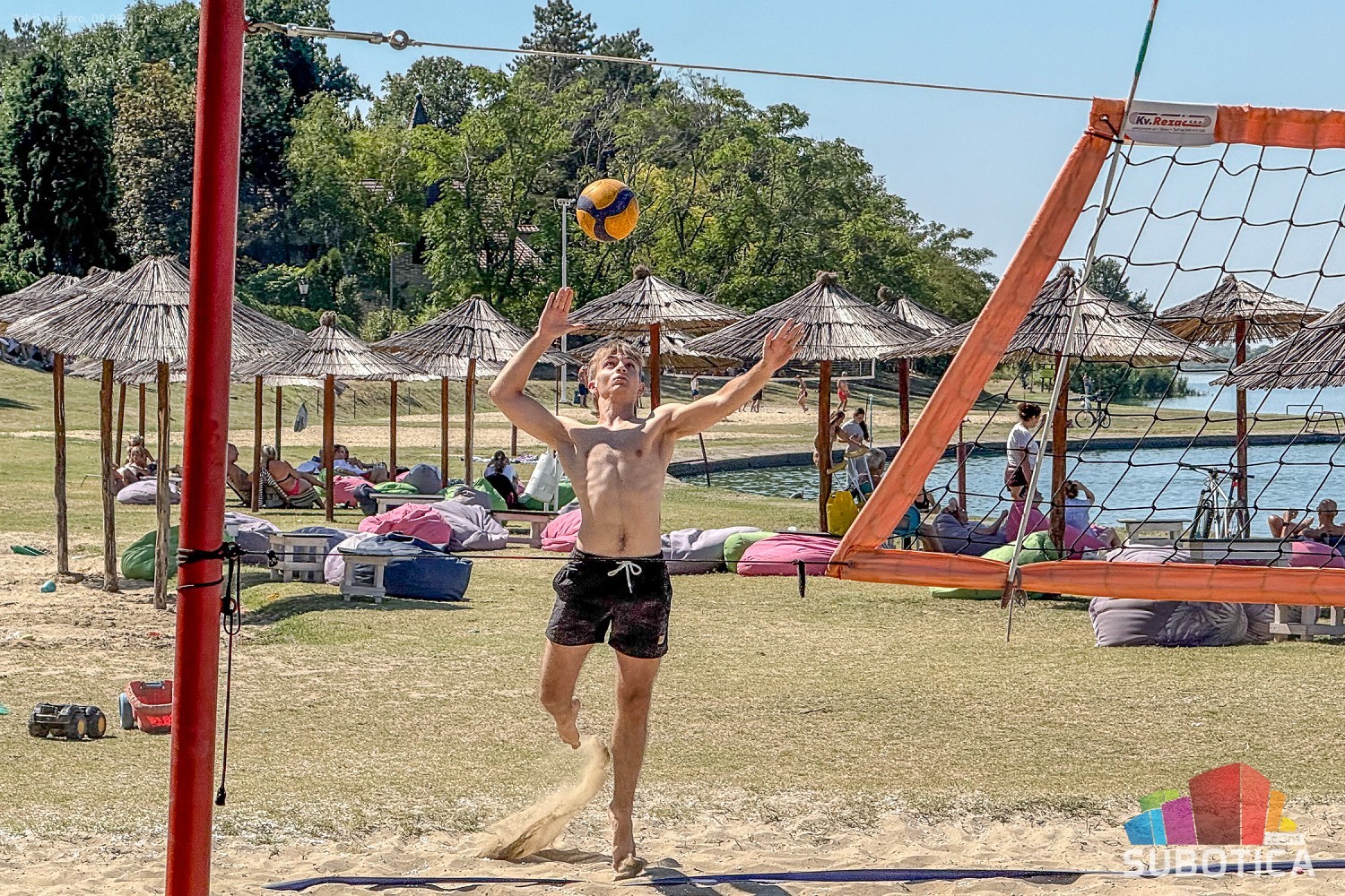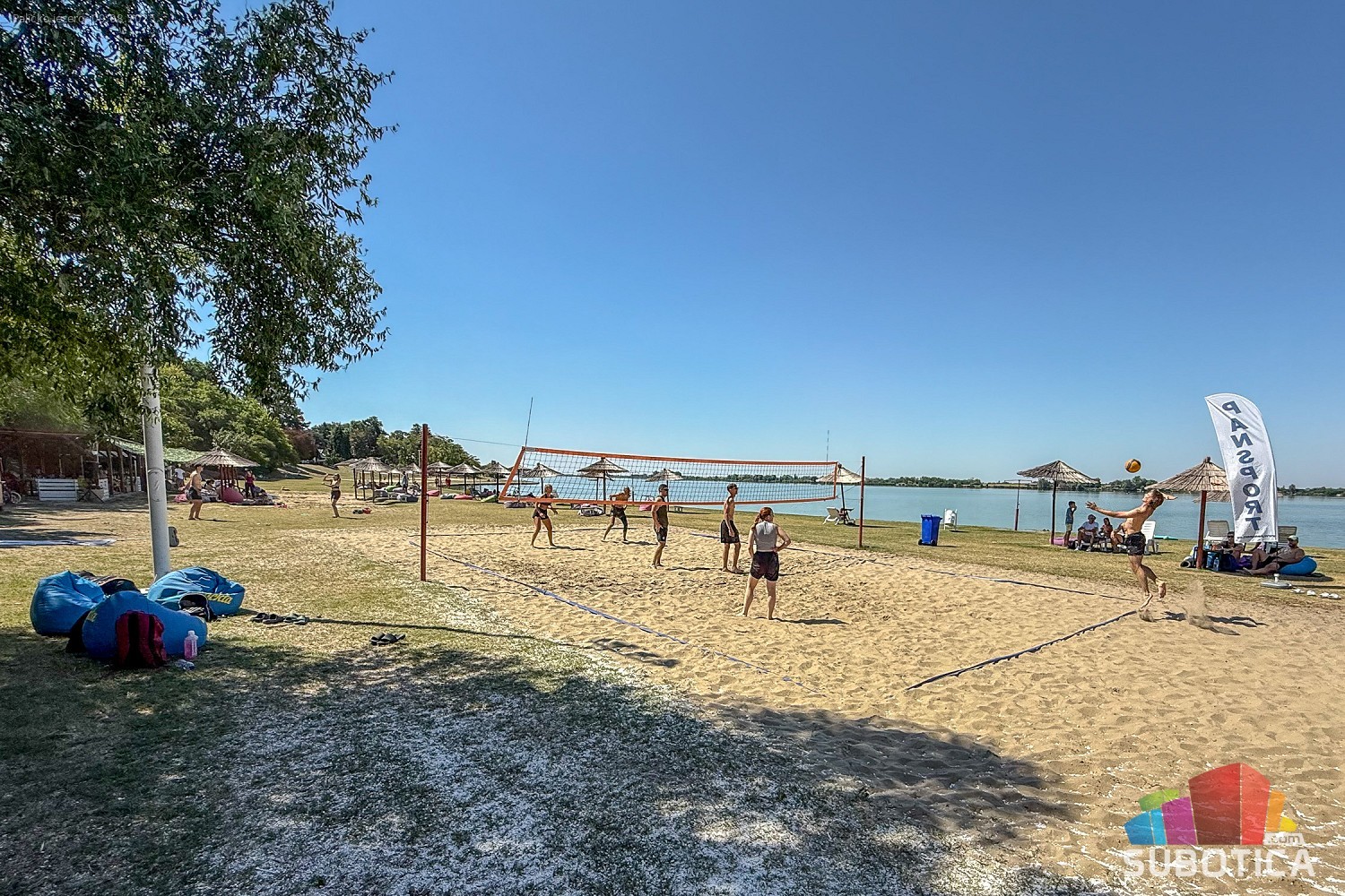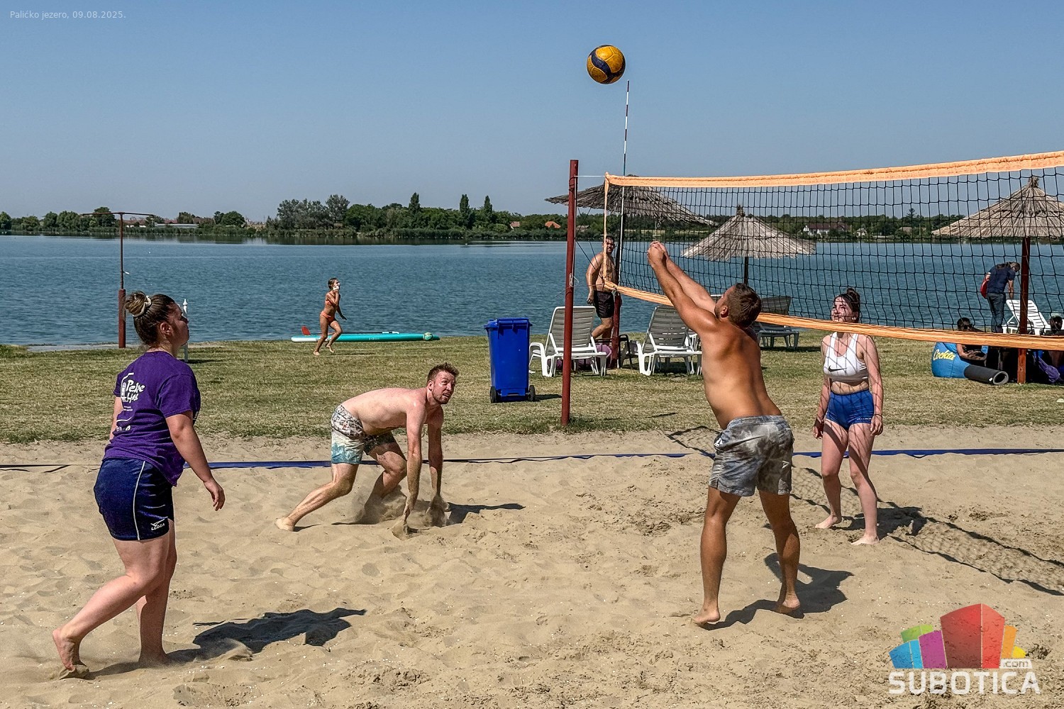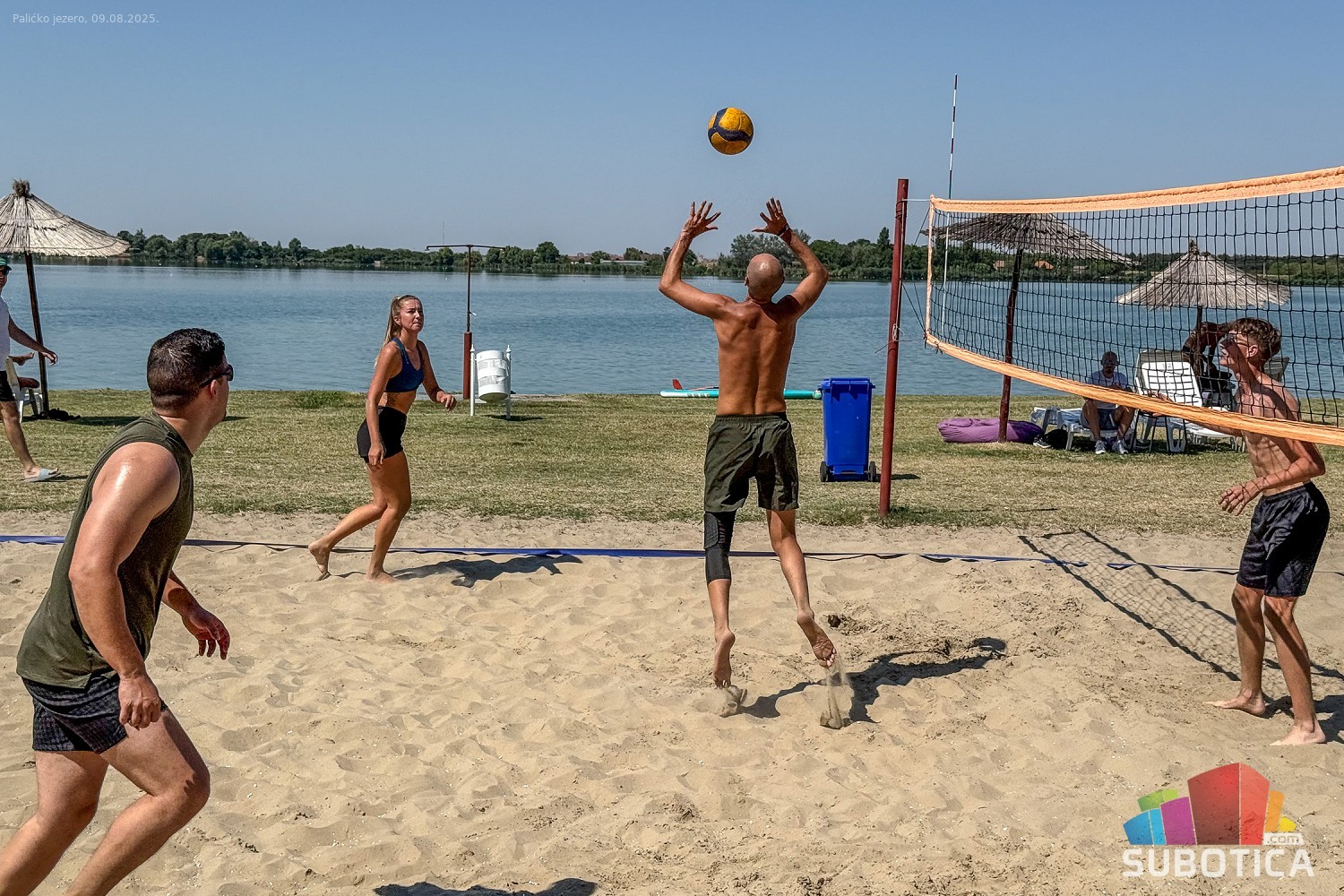 Odbojka na pesku na plaži uz jezero