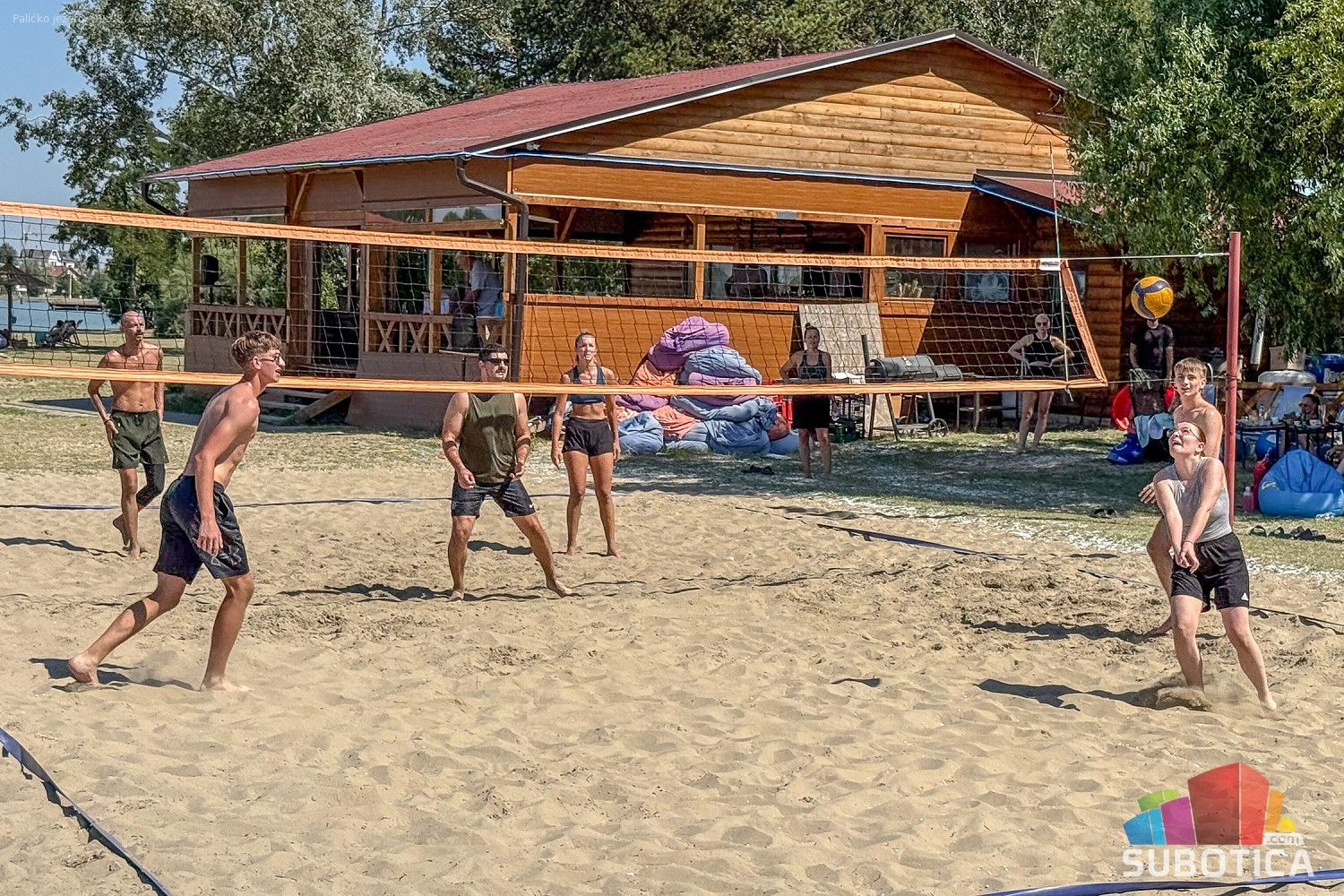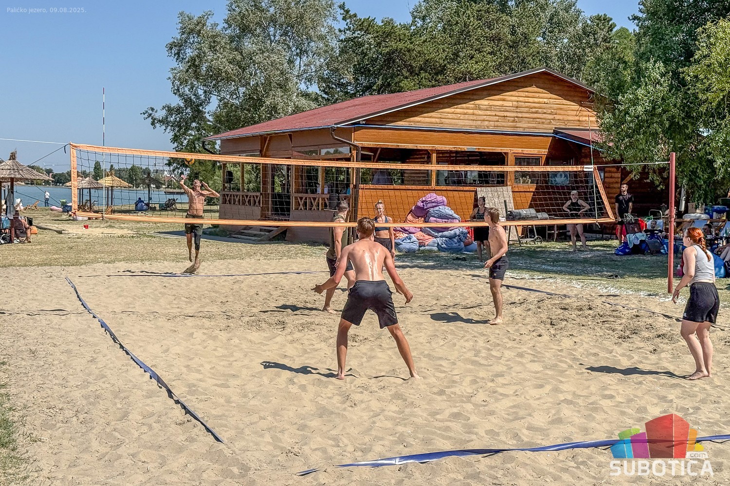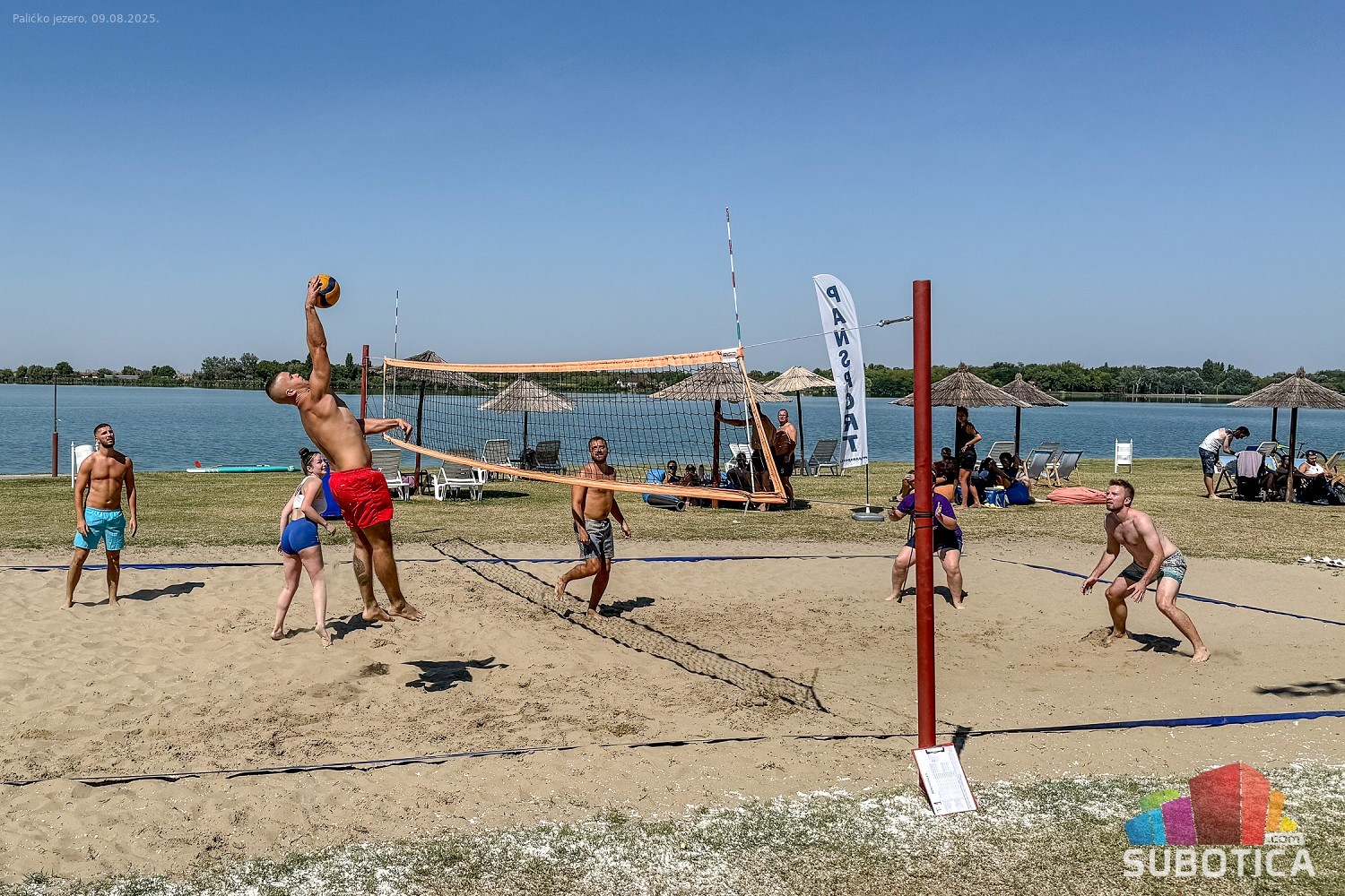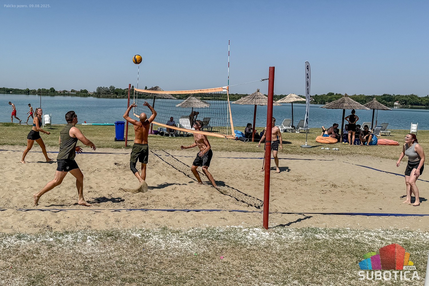 Odbojka na pesku na plaži uz jezero