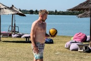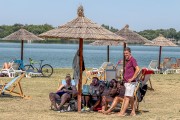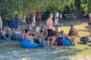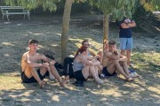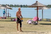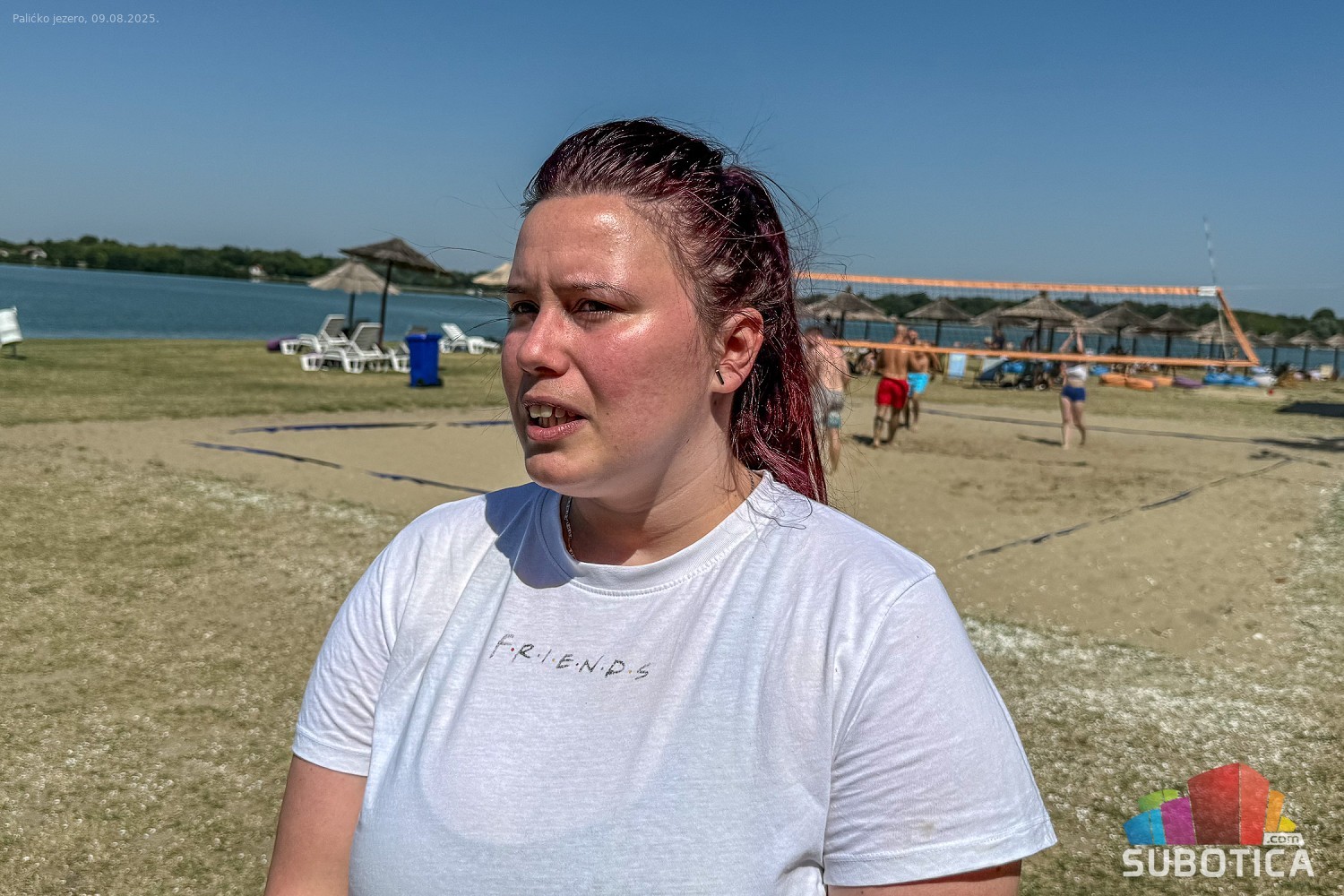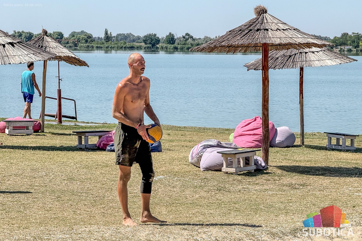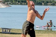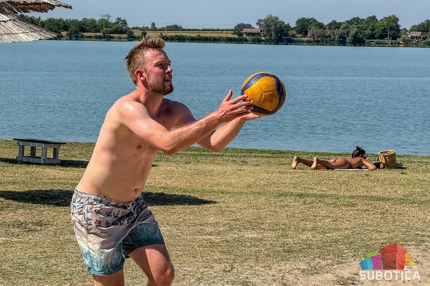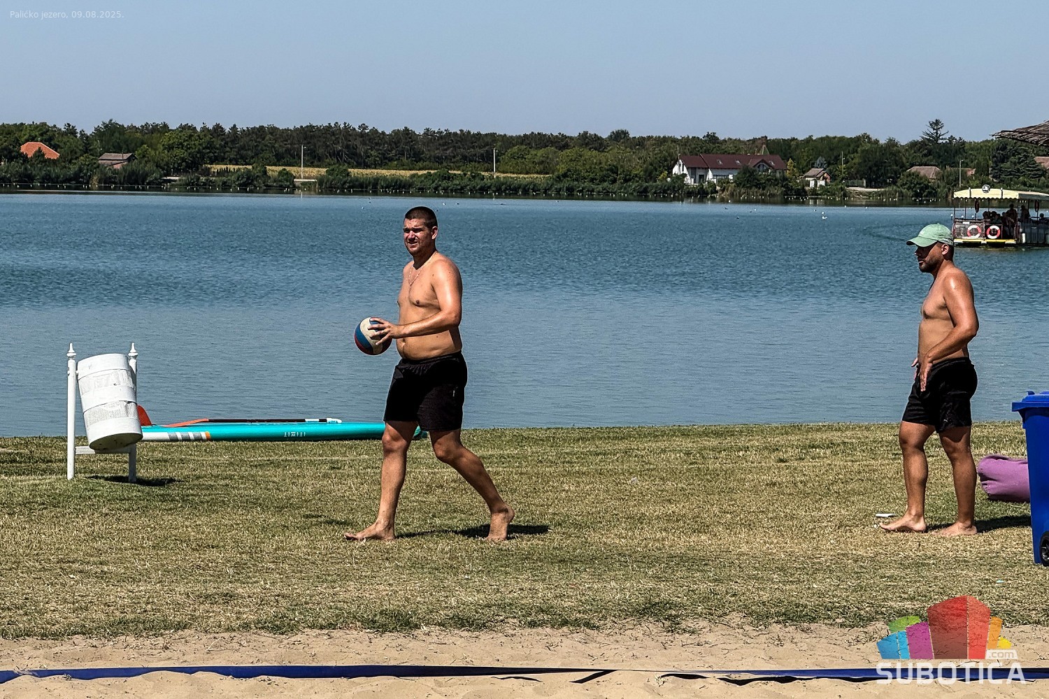 Odbojka na pesku na plaži uz jezero