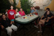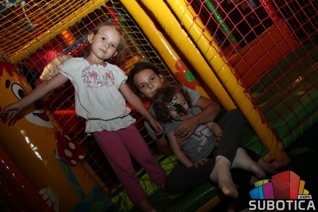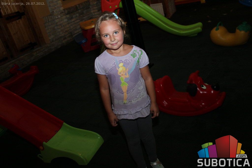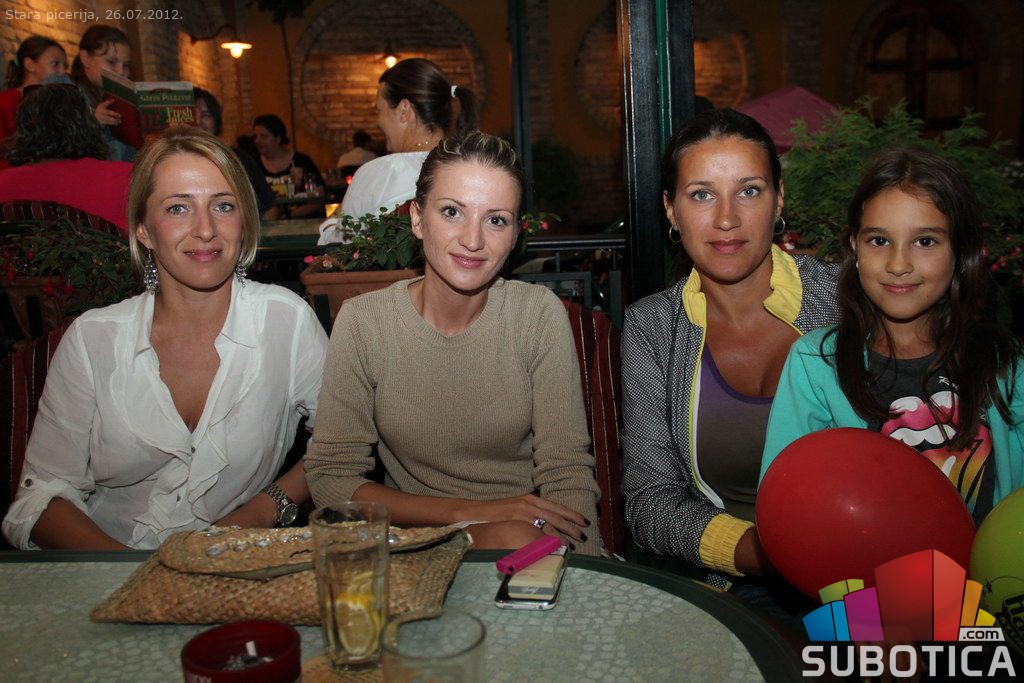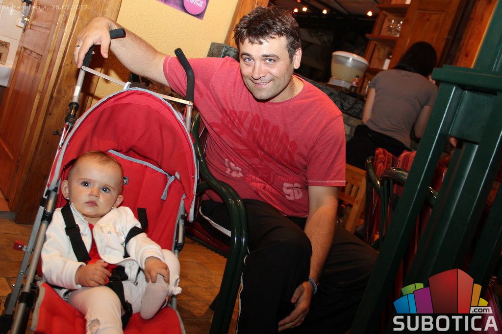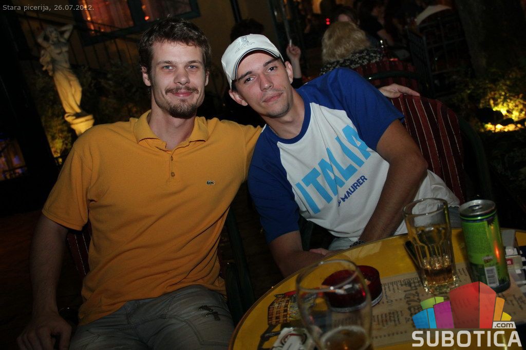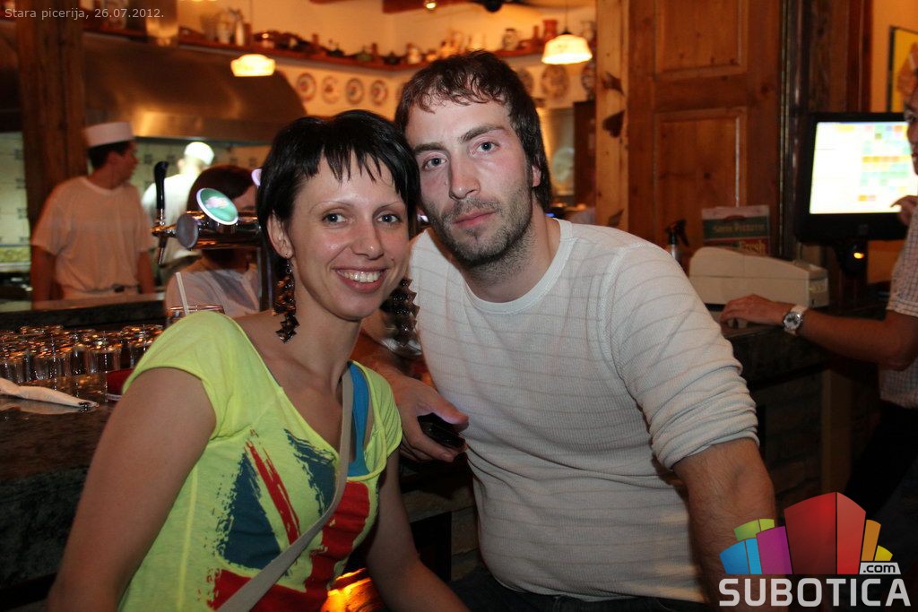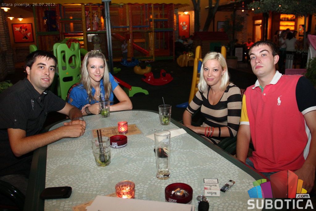A girl between maniacs at Stara Piceria