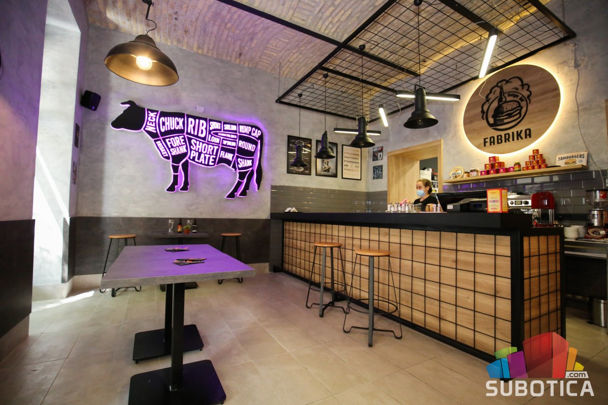 Burger bar "Fabrika" se nalazi na početku ulice Matije Korvina, a radno vreme lokala je od ponedeljka do subote od 9 do 23 časa, dok je nedeljom od 13 do 23 časa.