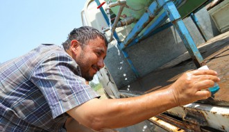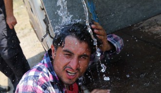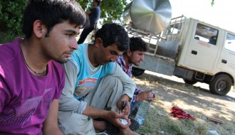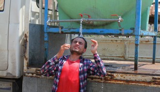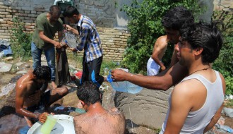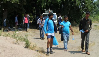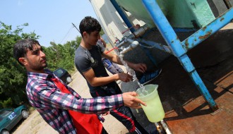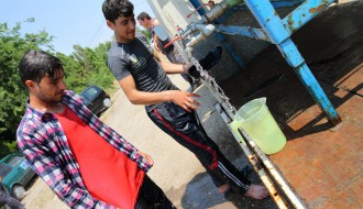 Dopremanje vode za migrante u Ciglani