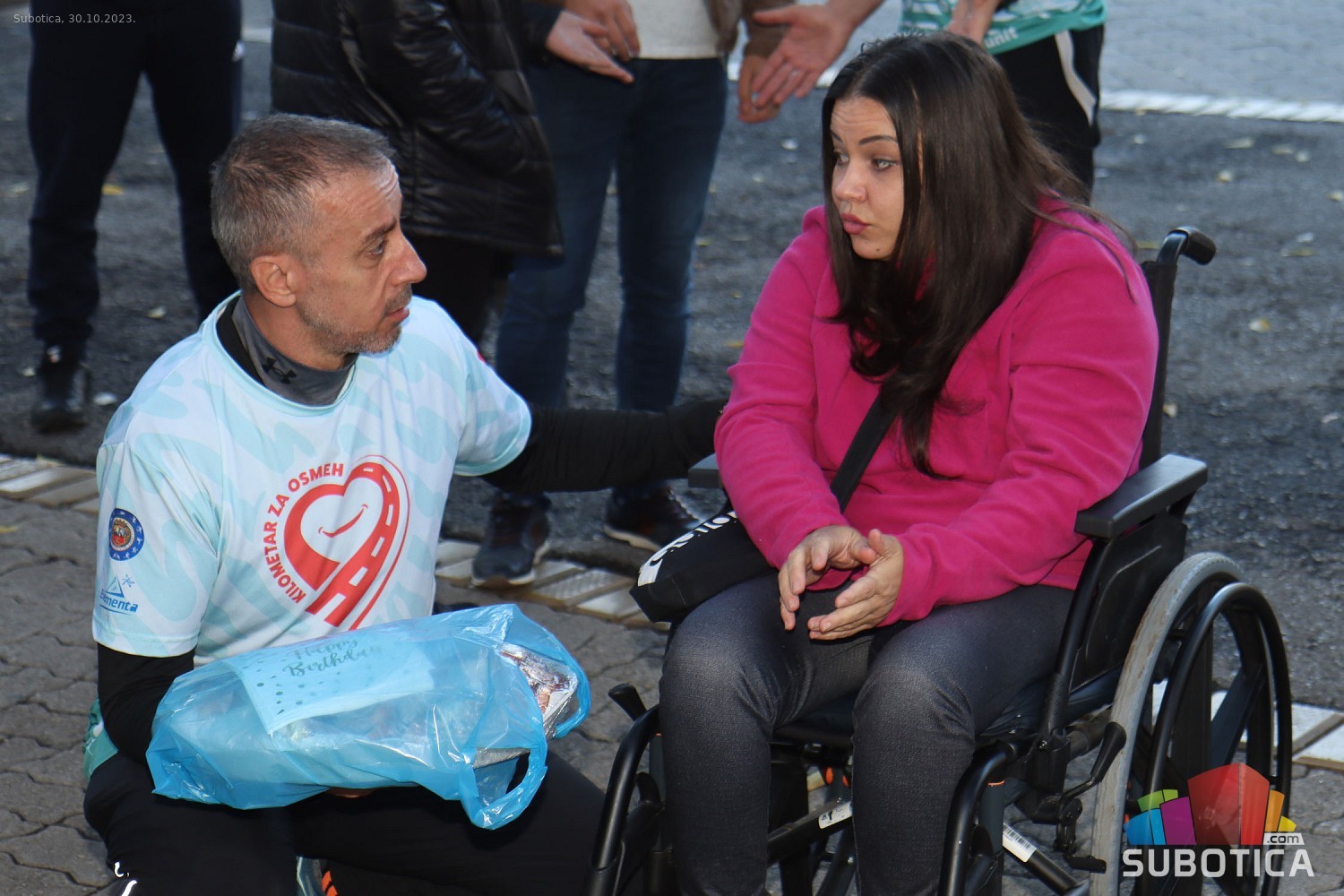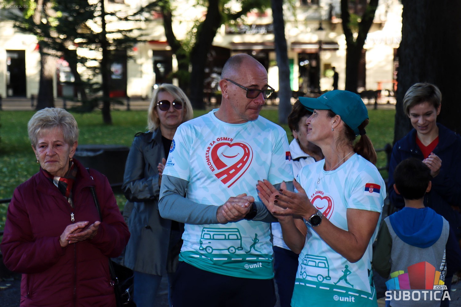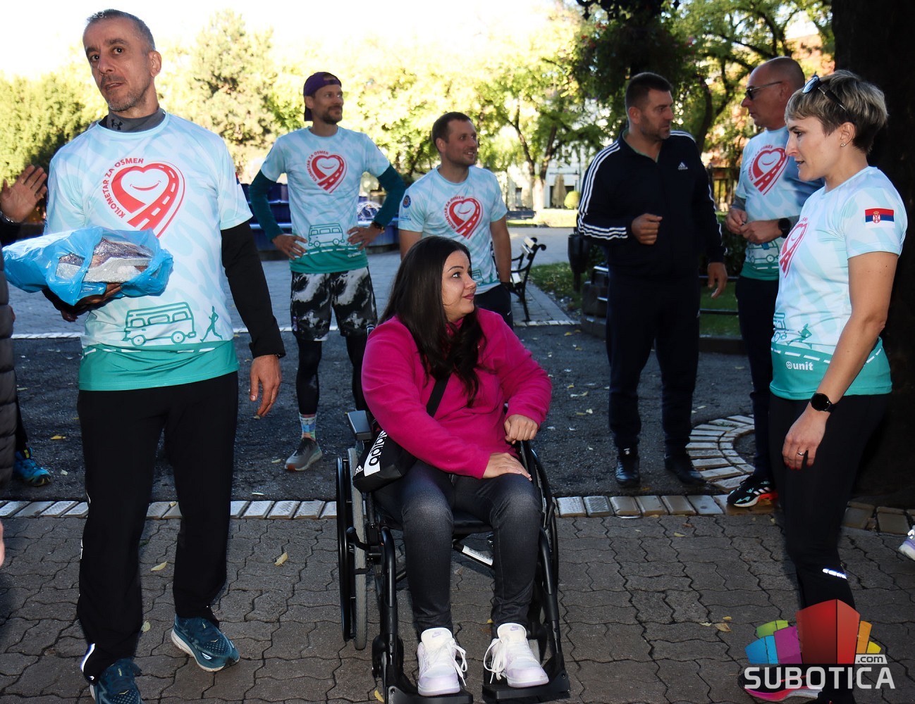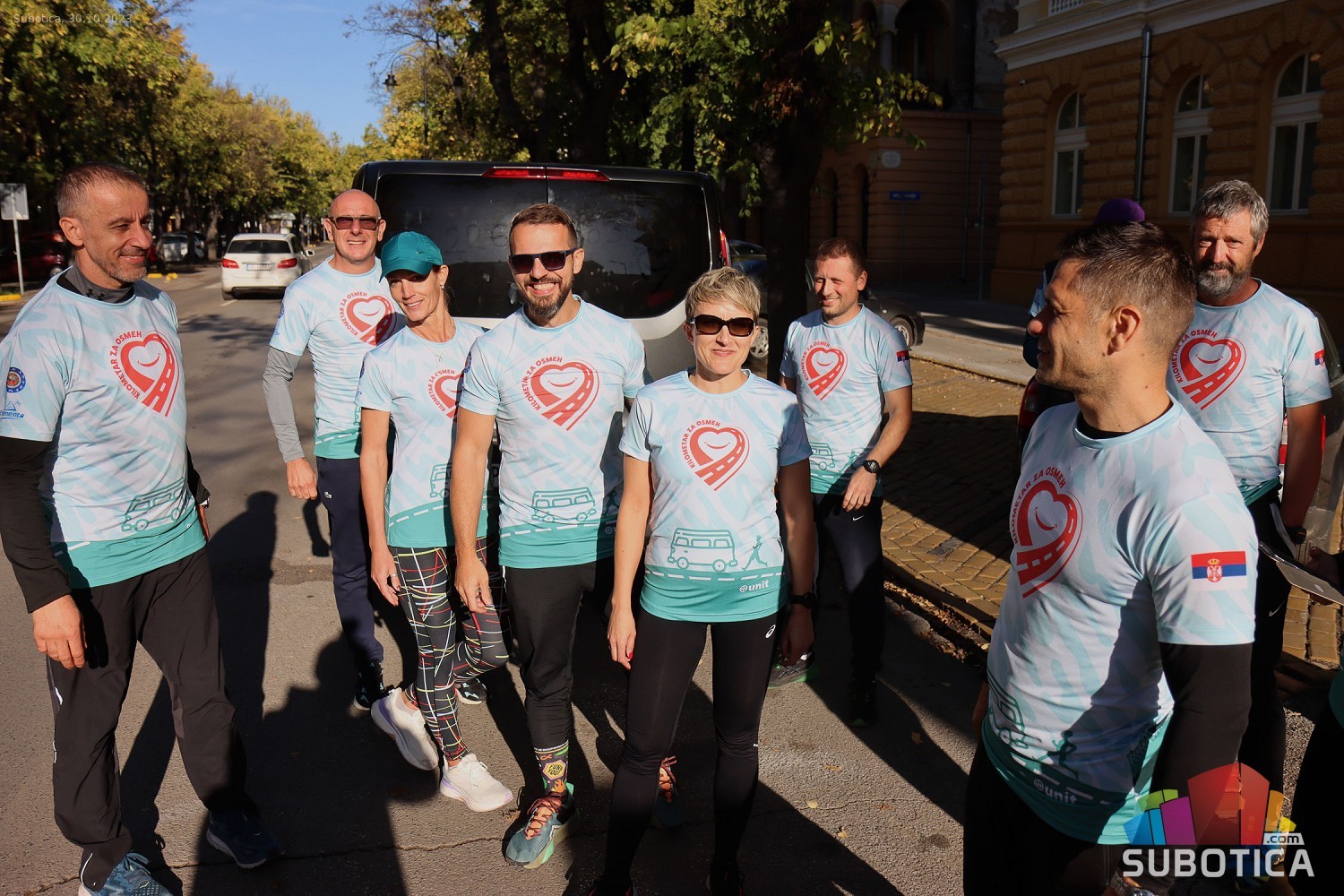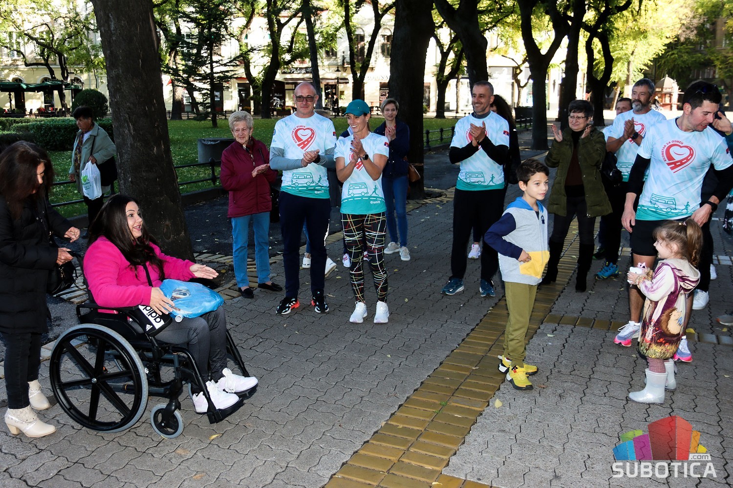 Štafetna trka „Kilometar za osmeh“ duga oko 300 kilometara počela je u subotu ud 10 časova ujutru a završena je juče u 9 ujutro. Puna 24 časa, bez trenutka sna, naši sugrađani velikog srca trčali su od Subotice do Novog Sada i nazad a sve sa ciljem da se prikupi što više novca za lečenje Subotičanke Andree Mudrić, koja je godinama prikovana za invalidska kolica.