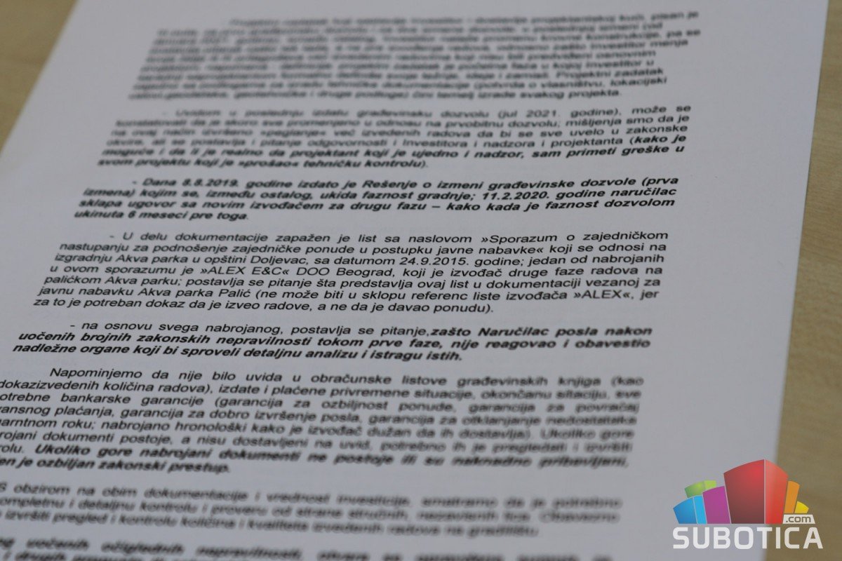 Gradski odbor Stranke slobode i pravde Subotica organizovao je danas konferenciju za medije na kojoj su izneli u javnost saznanja koja se tiču izgradnje akva parka, koju, kako tvrde, prati niz nezakonitosti, a zbog čega će podneti krivičnu prijavu protiv investitora.