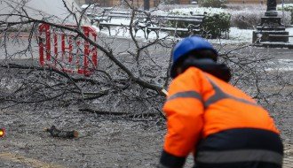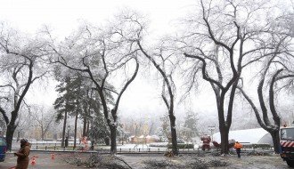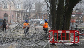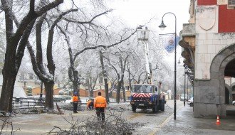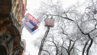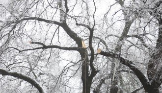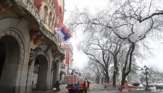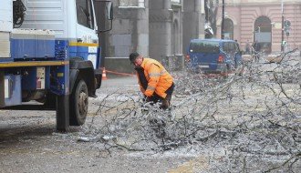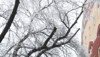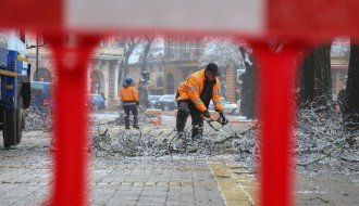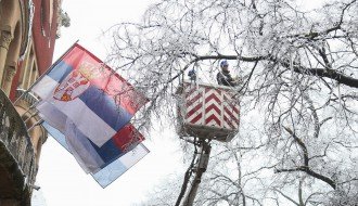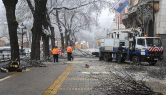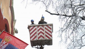 Orezivanje zaleđenih grana ispred svečanog ulaza Gradske kuće