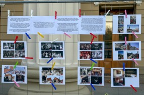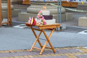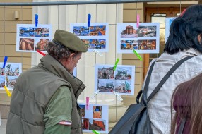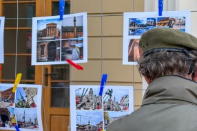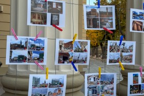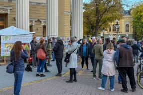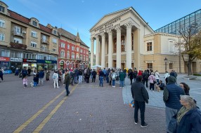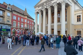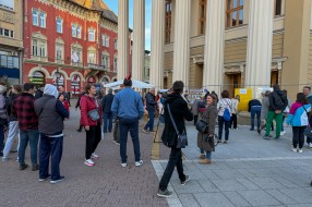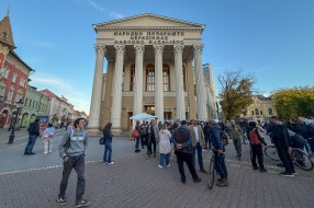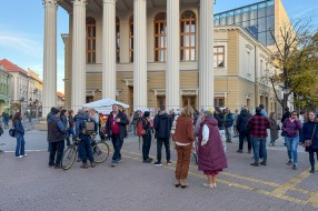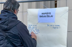 Performans grupe građana ispred zgrade Narodnog pozorišta povodom 18 godina od početka rekonstrukcije objekta
