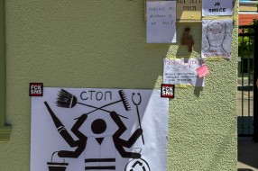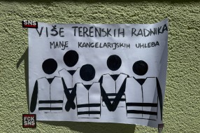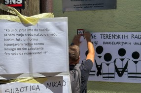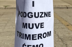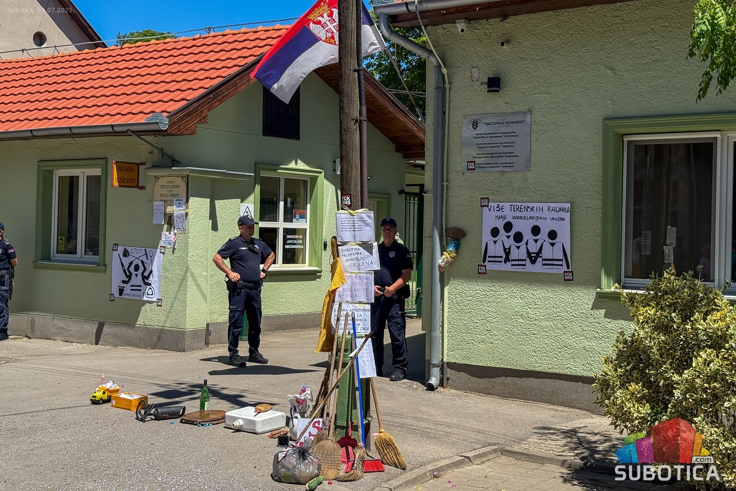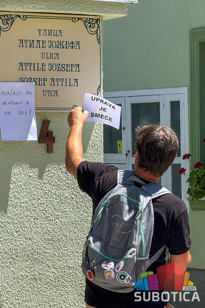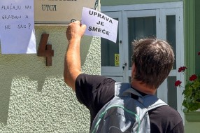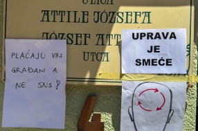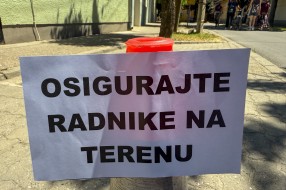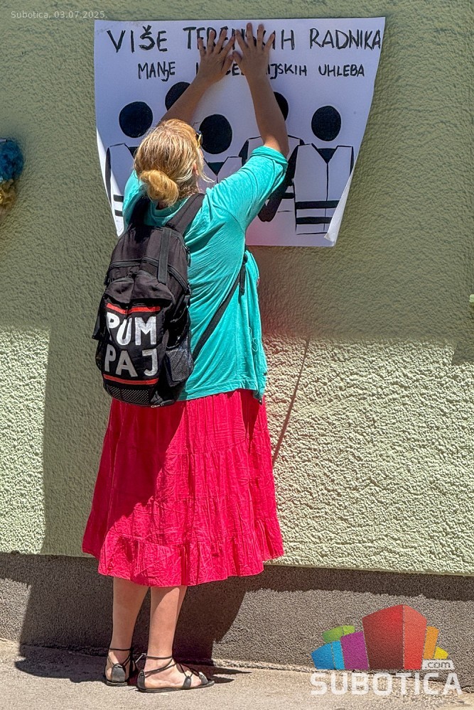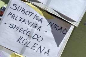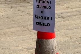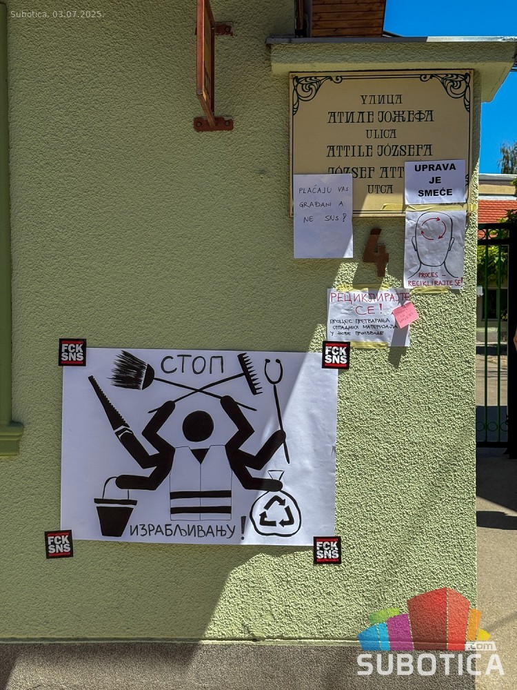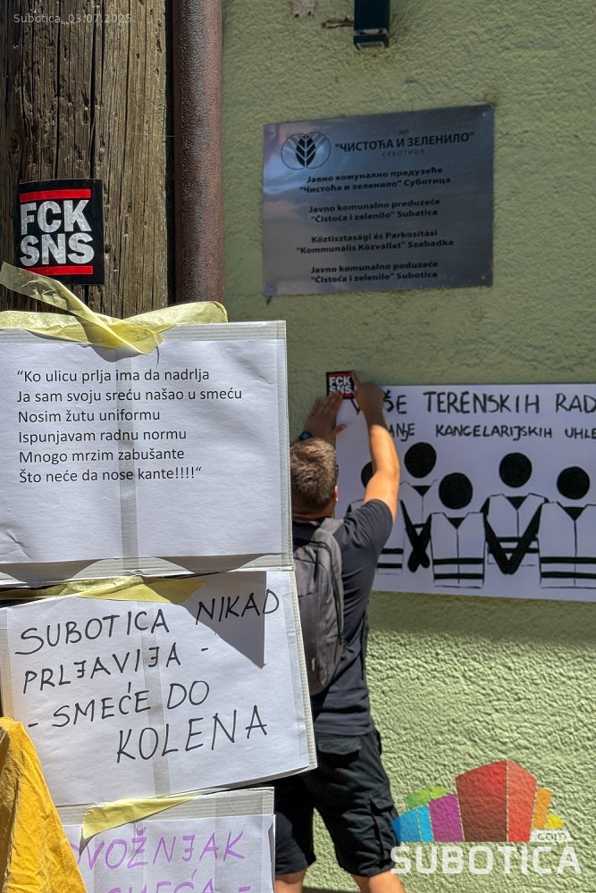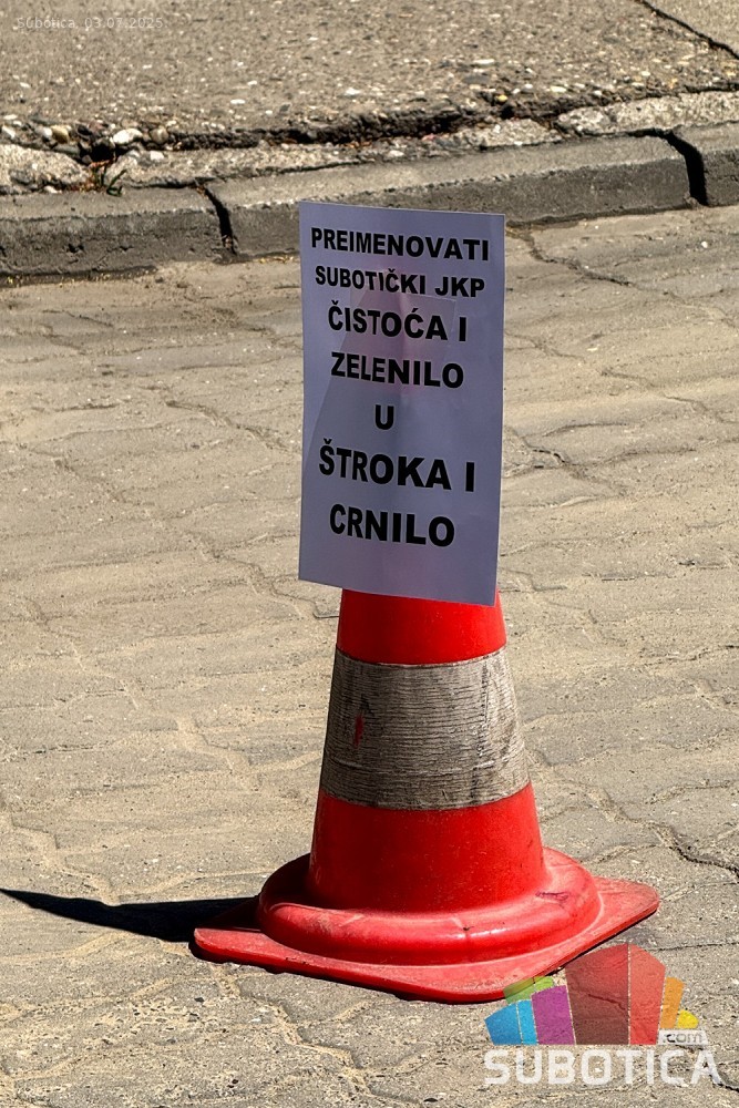 Protest ispred upravnih prostorija JKP "Čistoća i zelenilo" povodom nedavne izjave da nemaju kapacitet da urede javnu površinu nakon održavanja festivala.
