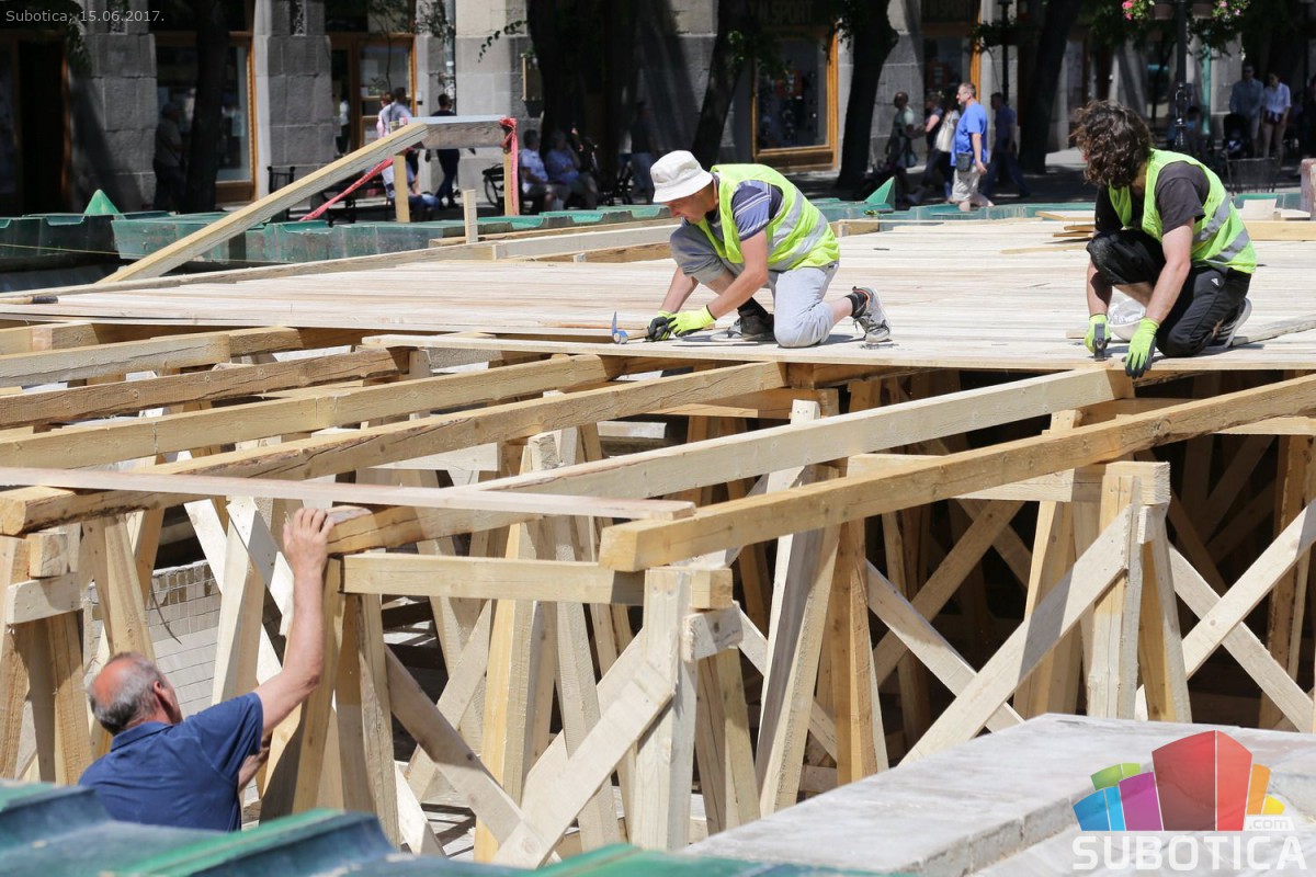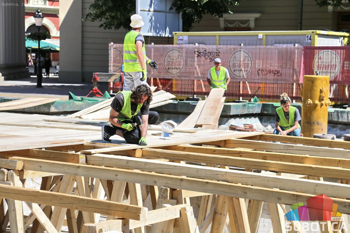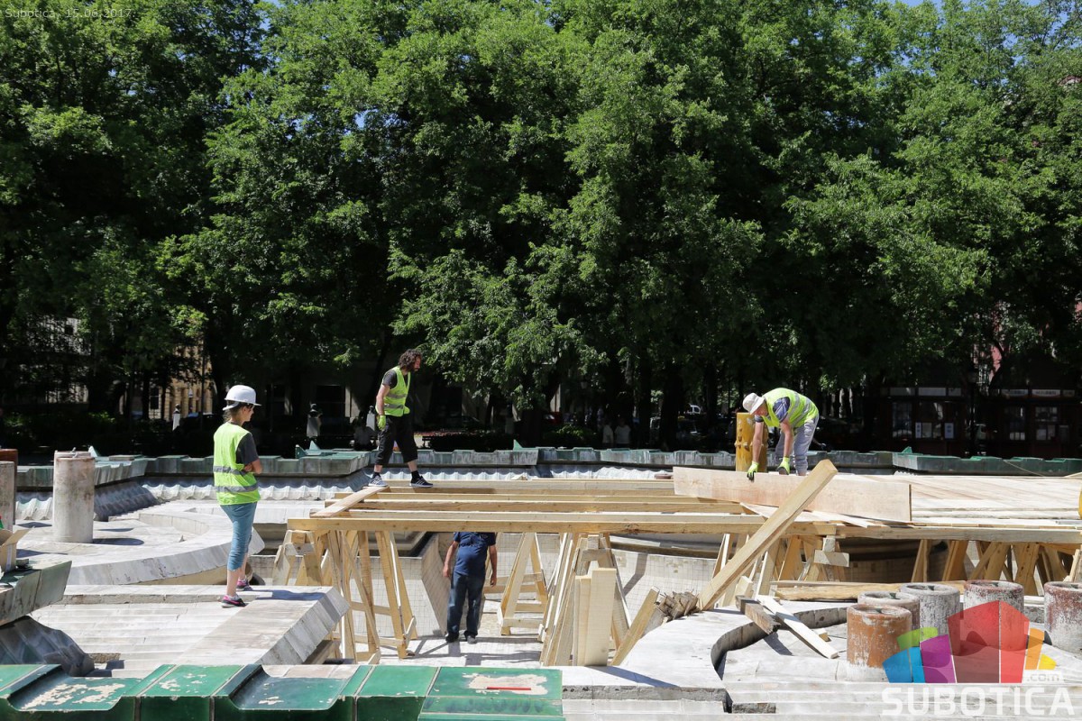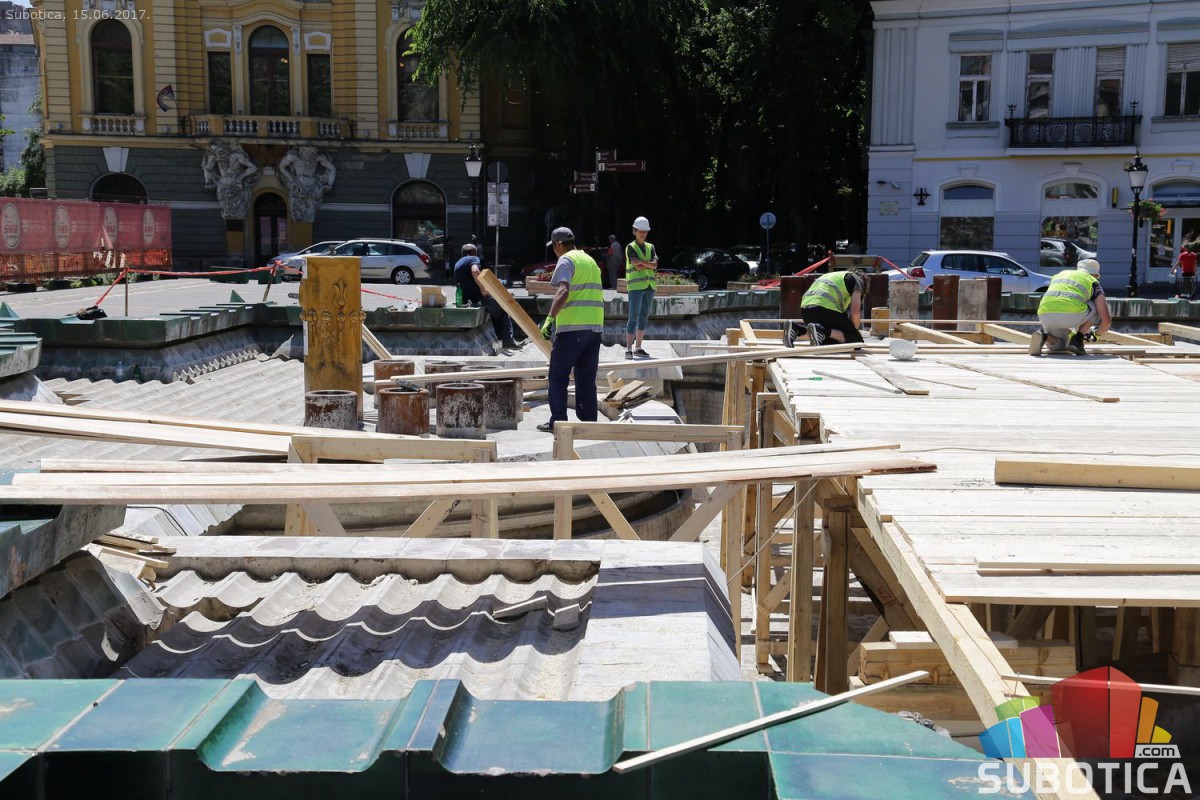 Postavljanje noseće konstrukcije zaštite na Zelenoj fontani