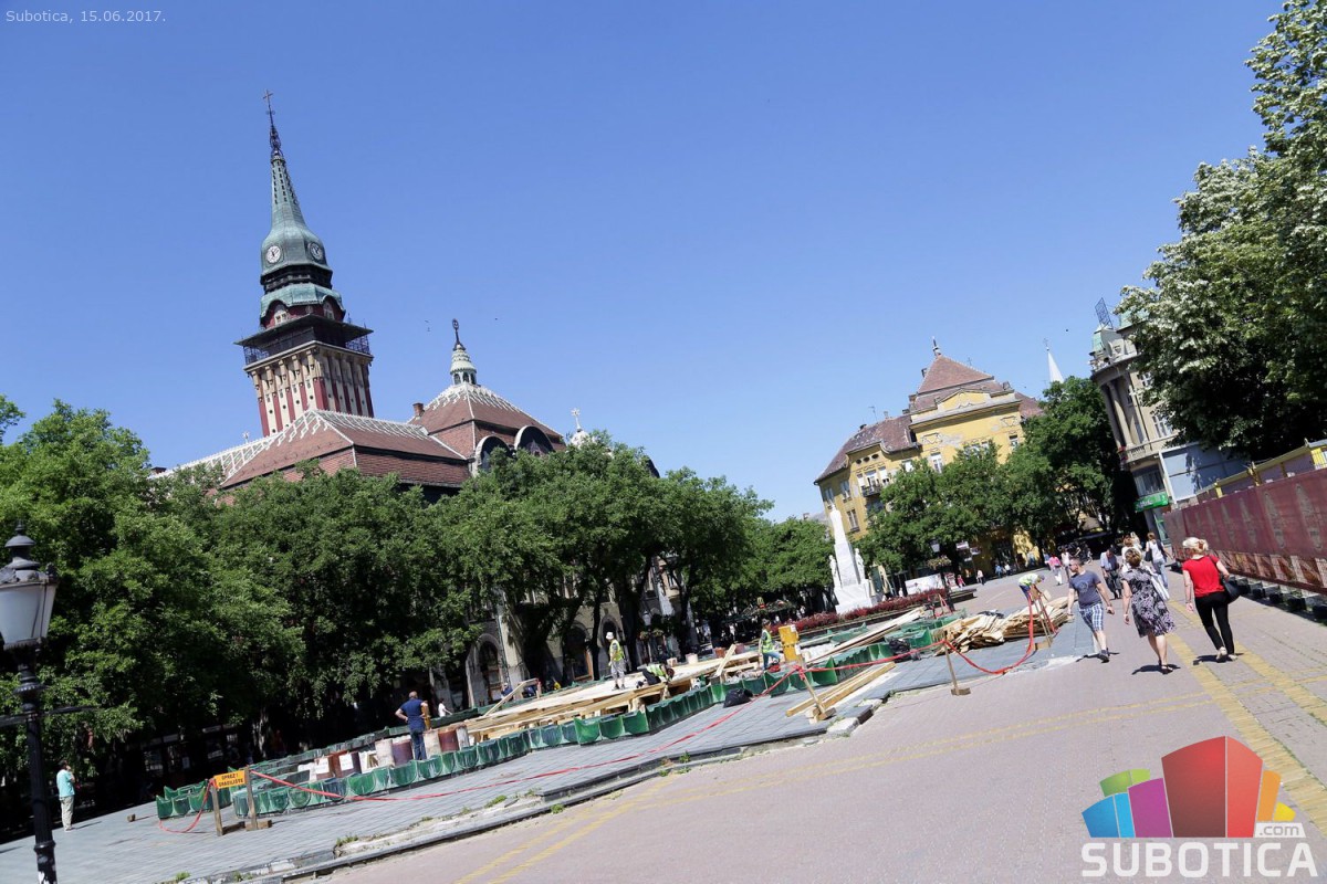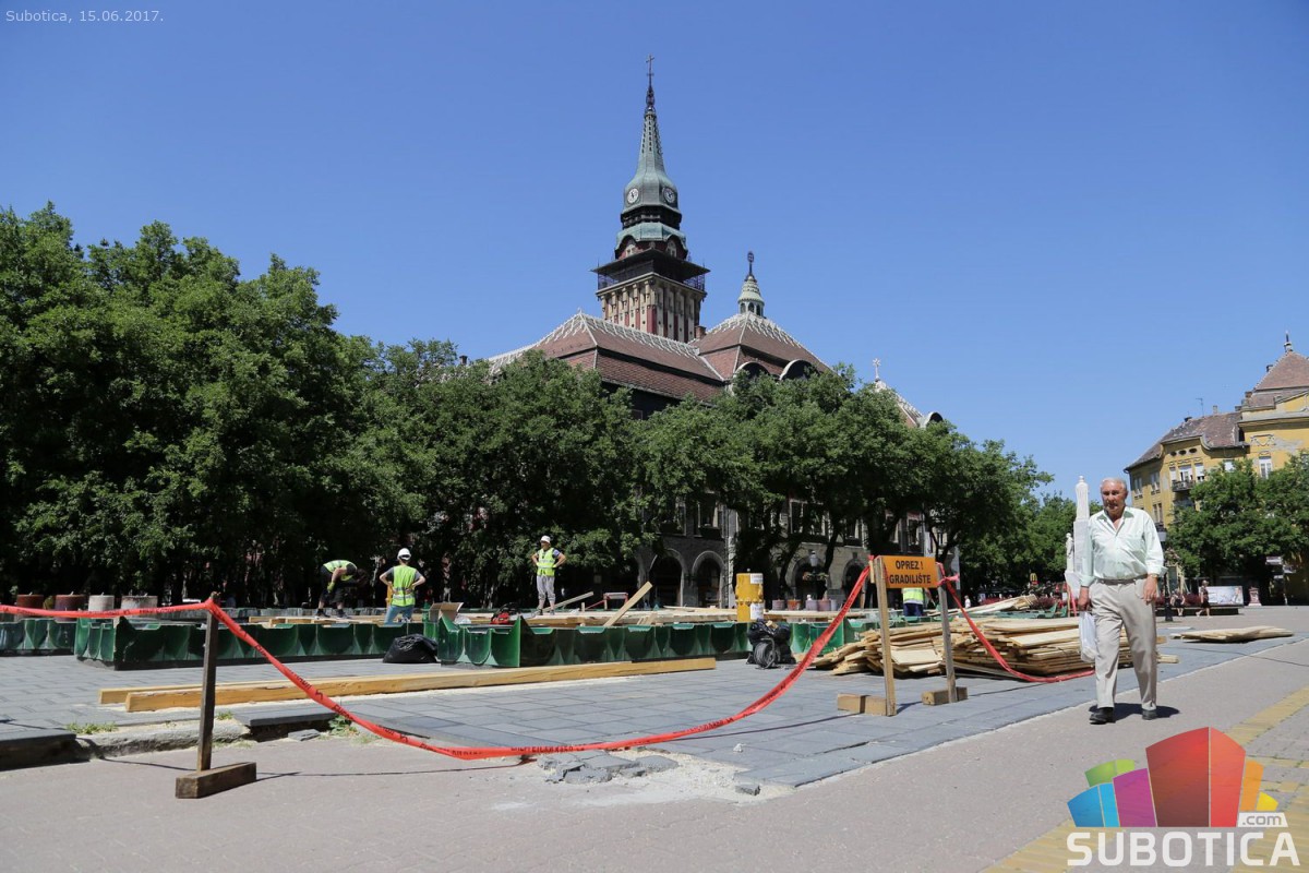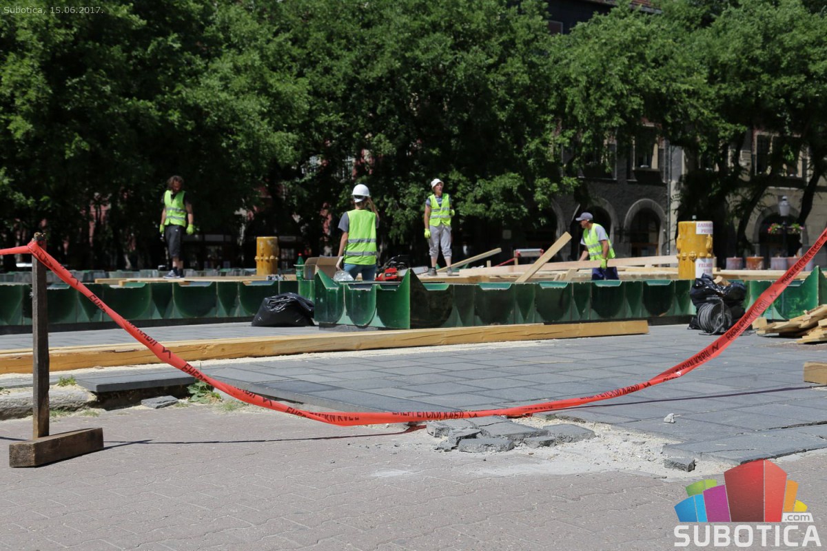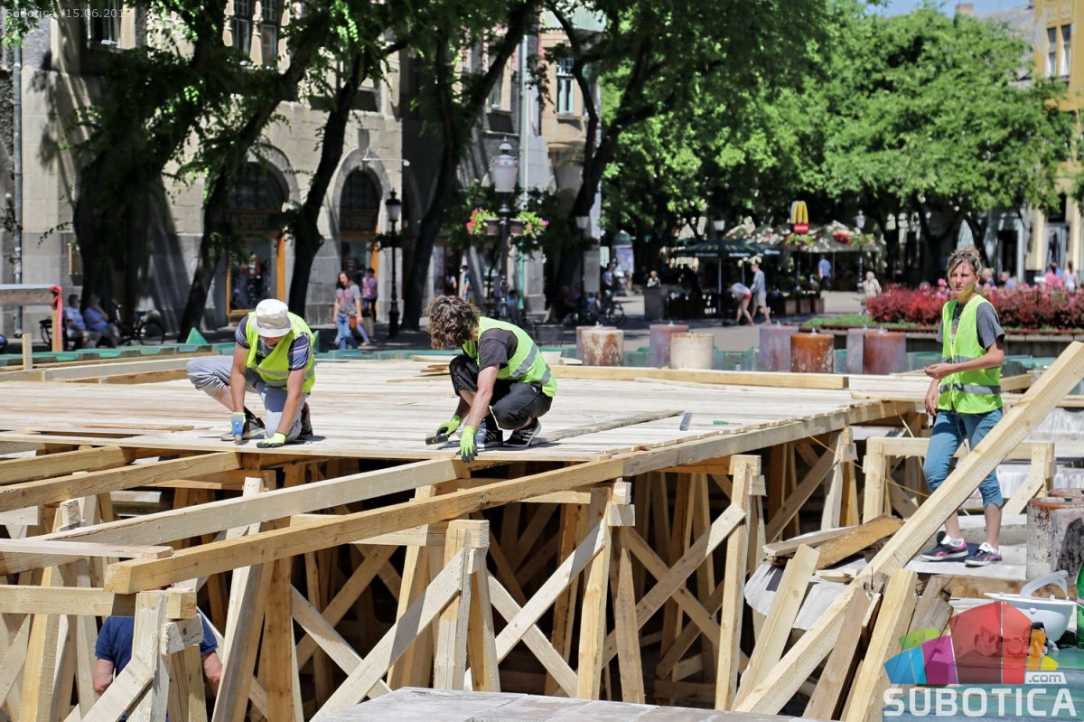 Postavljanje noseće konstrukcije zaštite na Zelenoj fontani