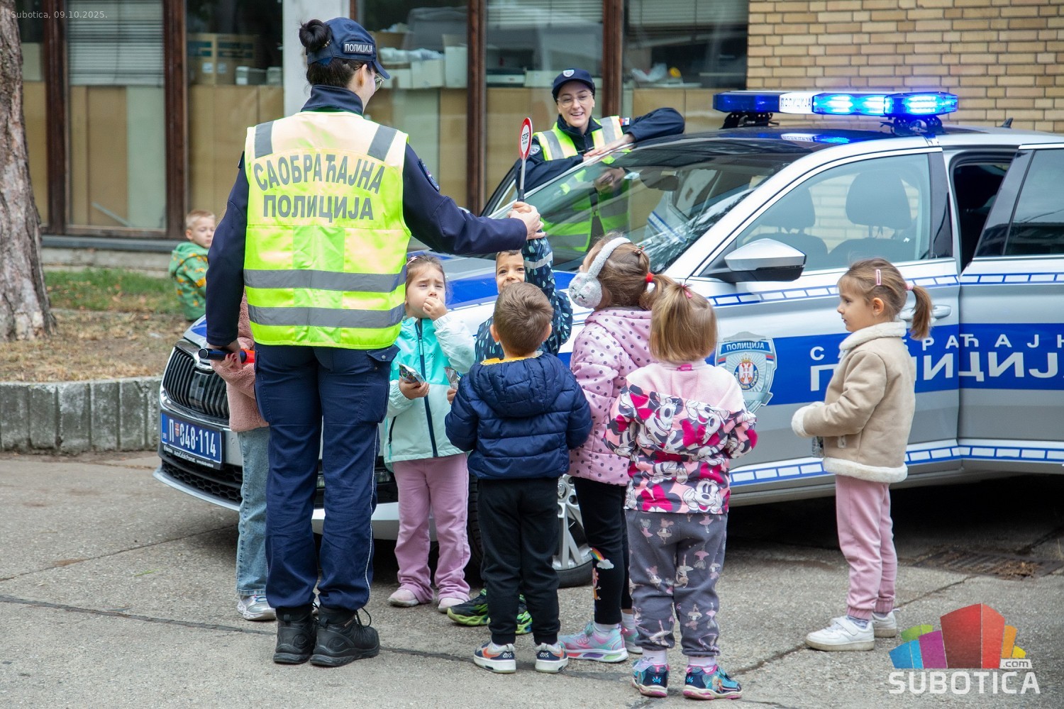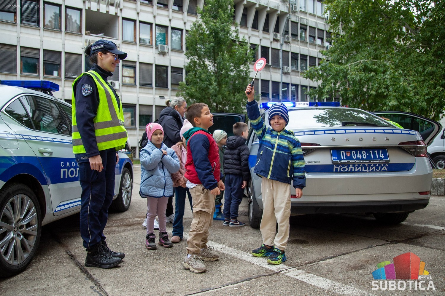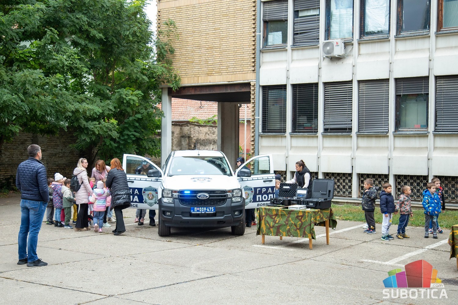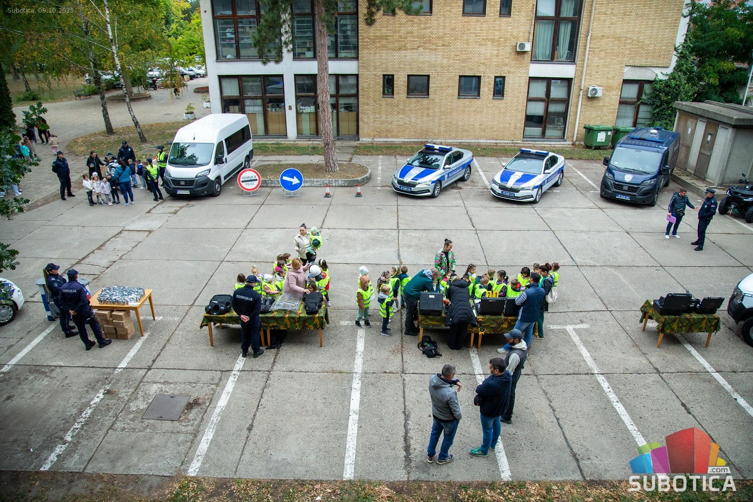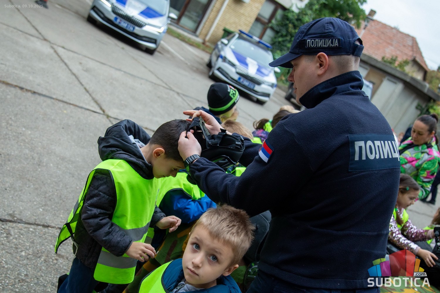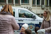 Prikaz tehničko-taktičke policijske opreme i službenih vozila deci predškoskih ustanova (plato ispred Policijske uprave Subotica na Segedinskom putu)
