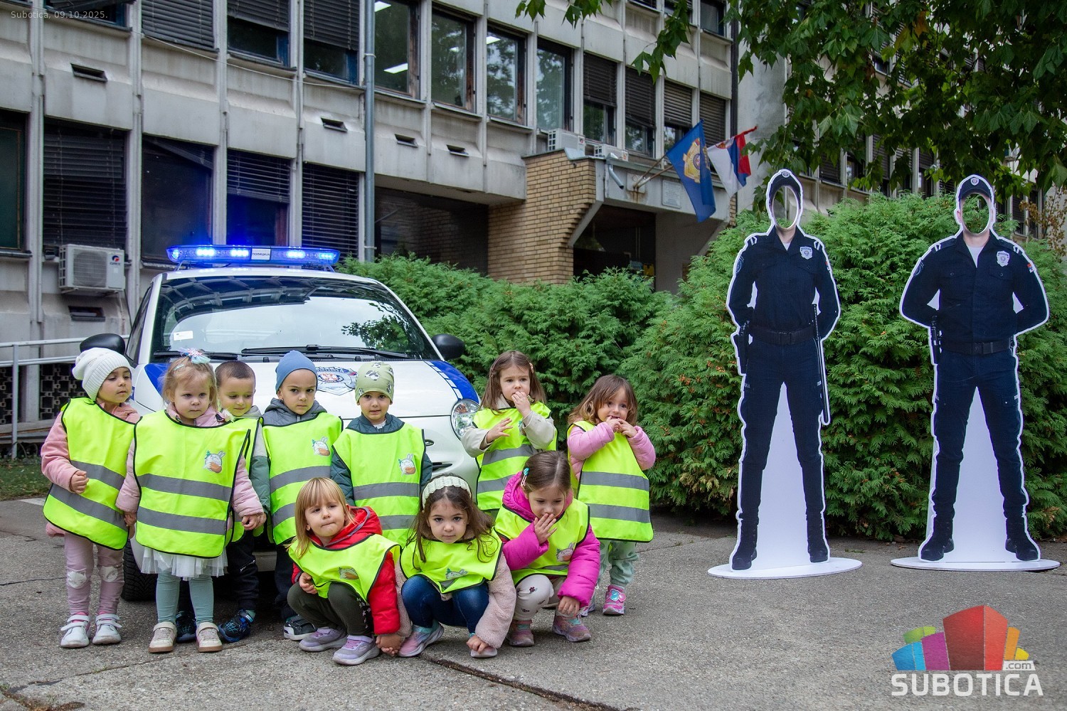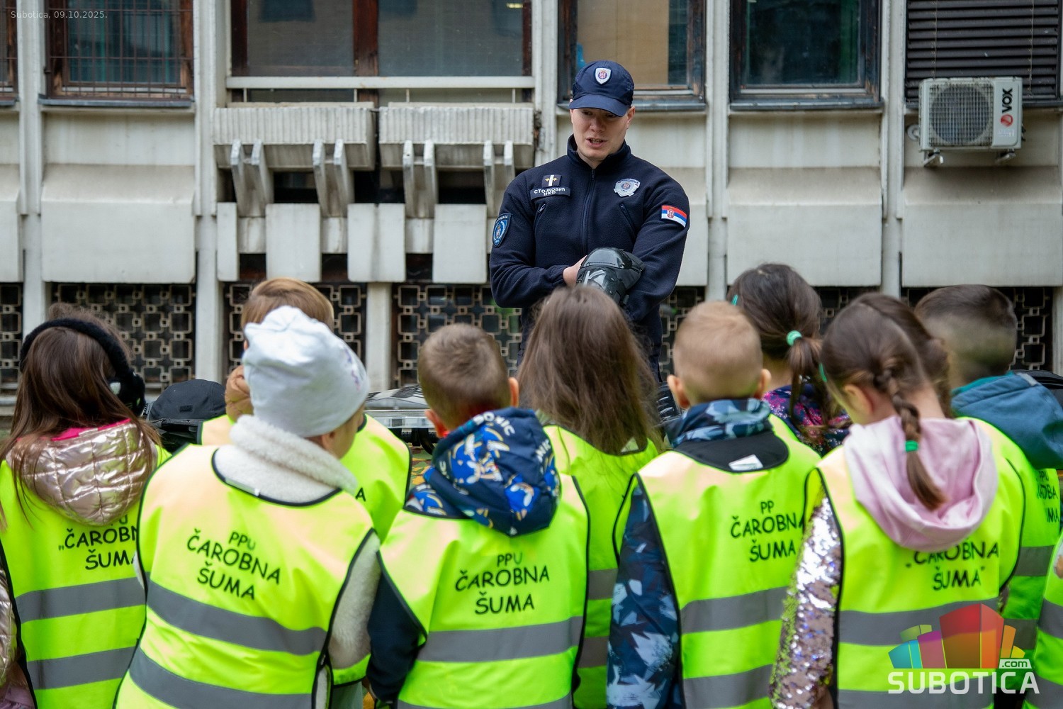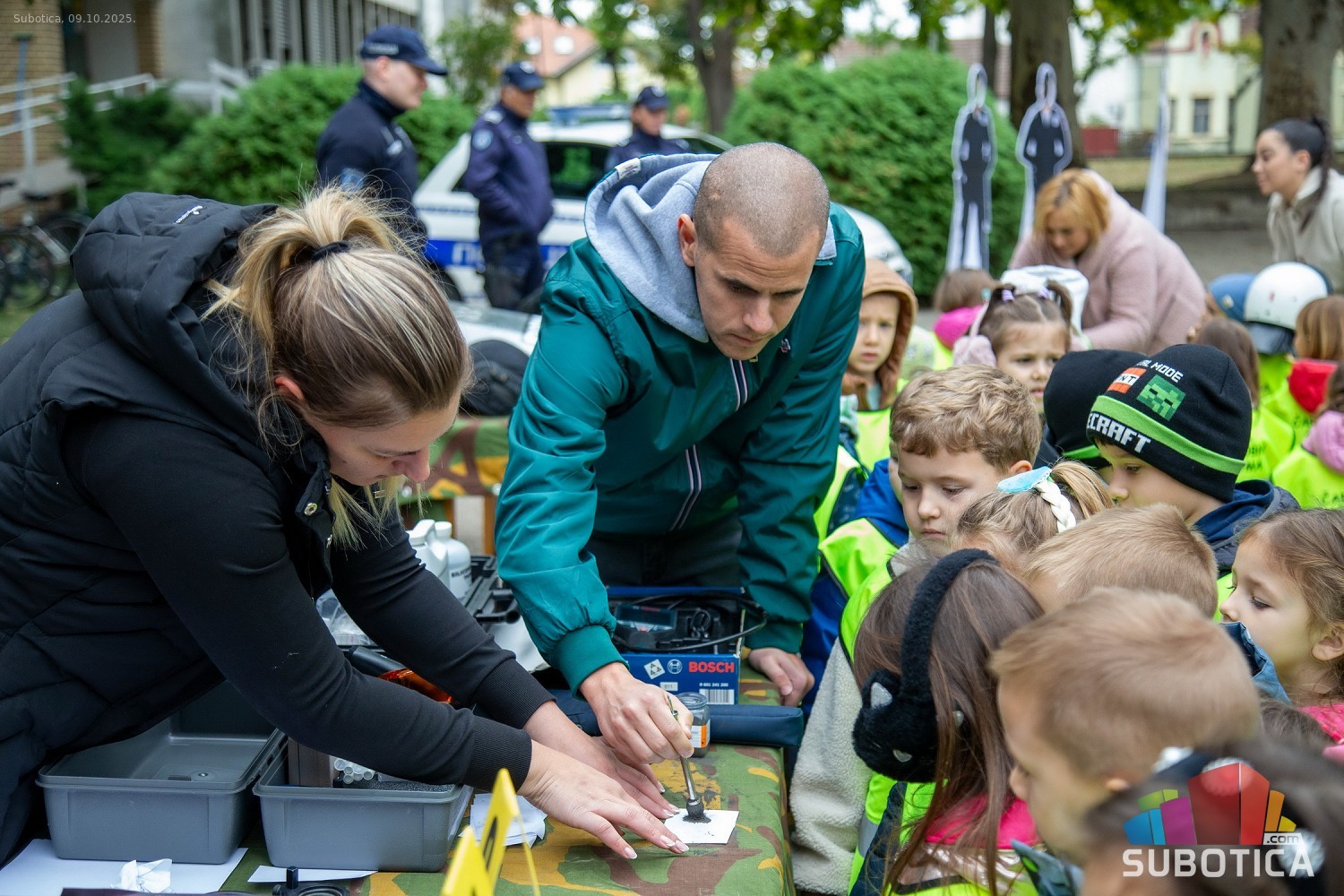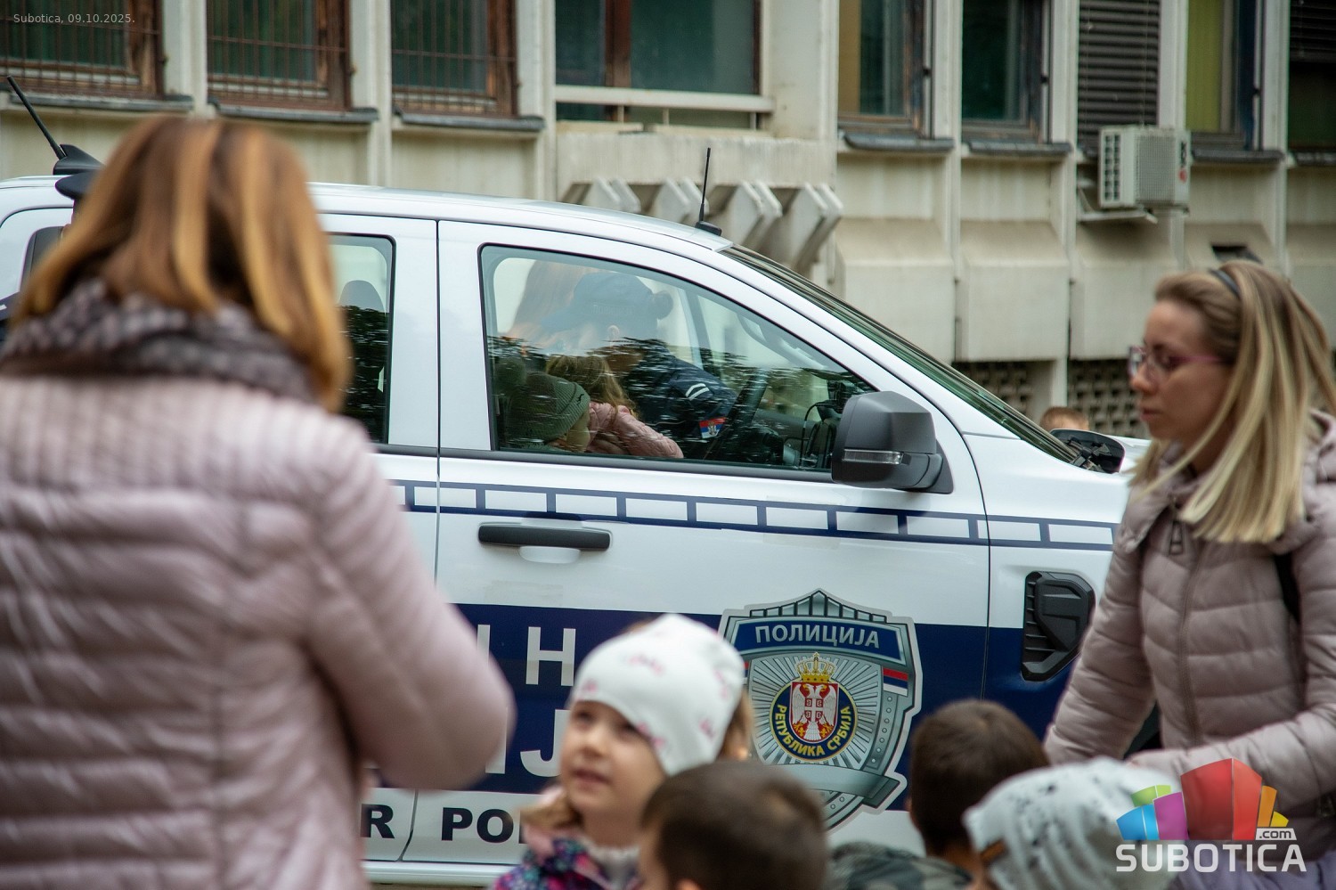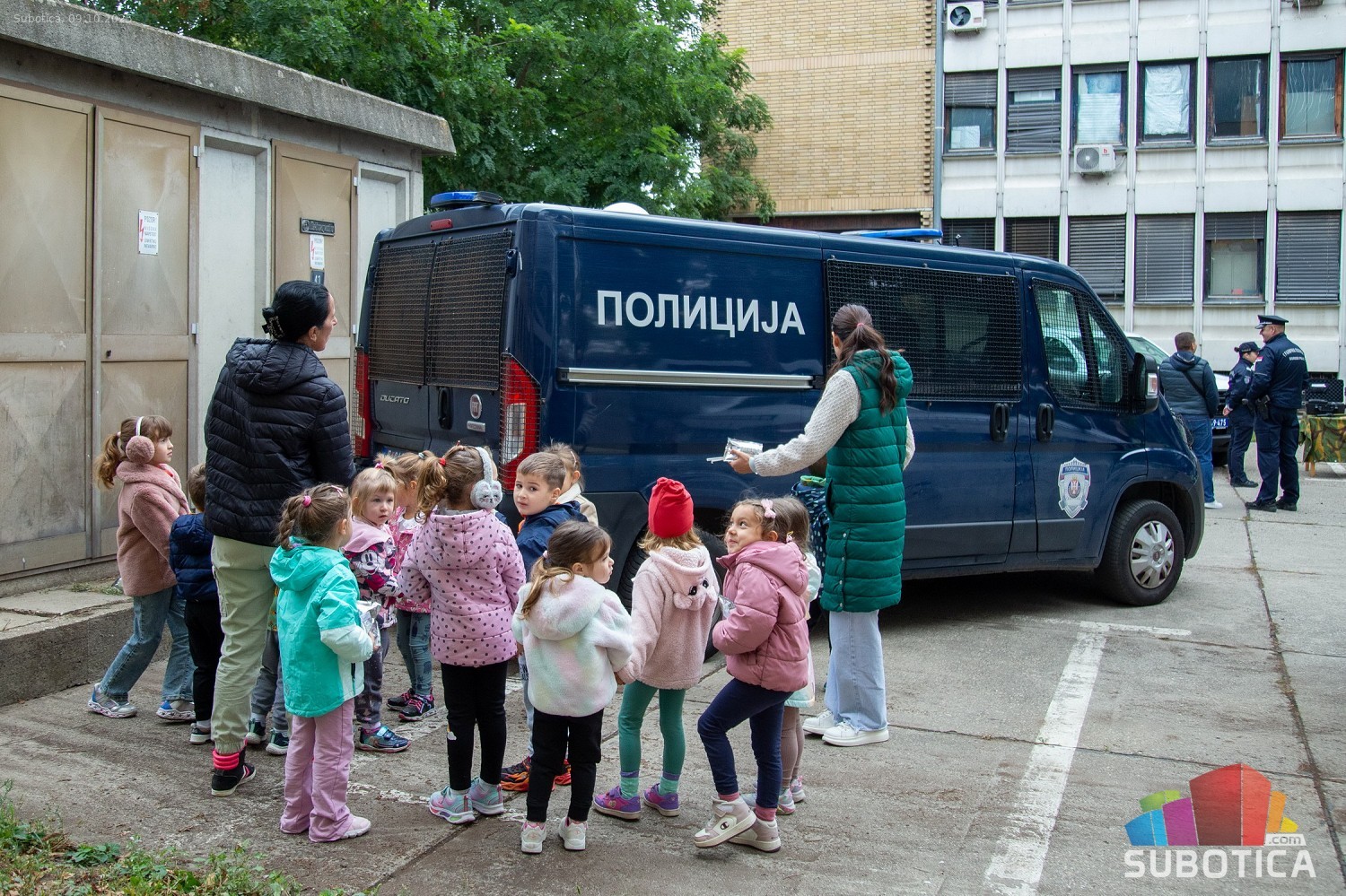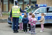 Prikaz tehničko-taktičke policijske opreme i službenih vozila deci predškoskih ustanova (plato ispred Policijske uprave Subotica na Segedinskom putu)