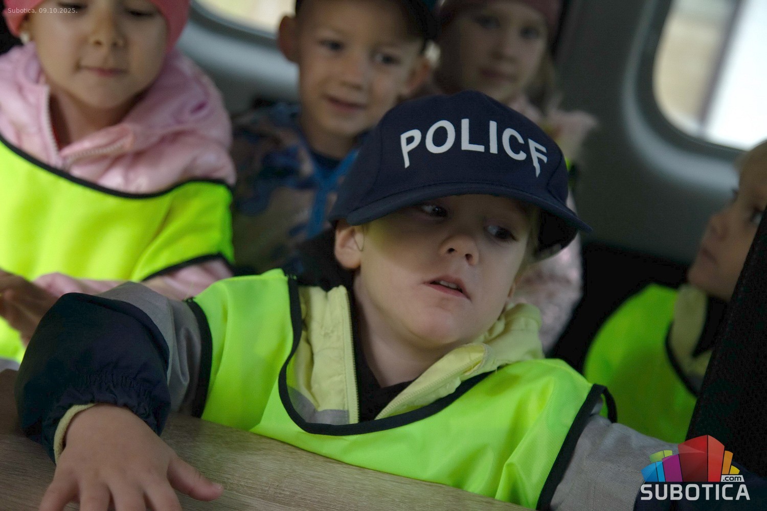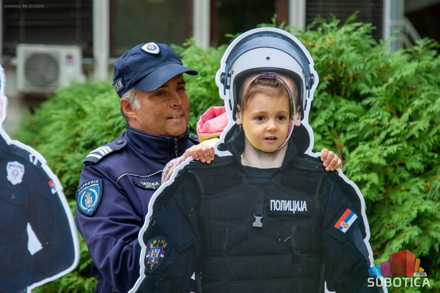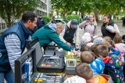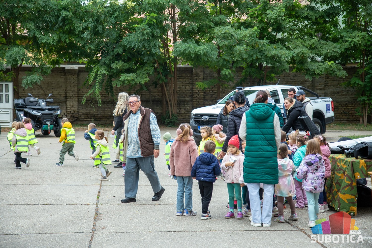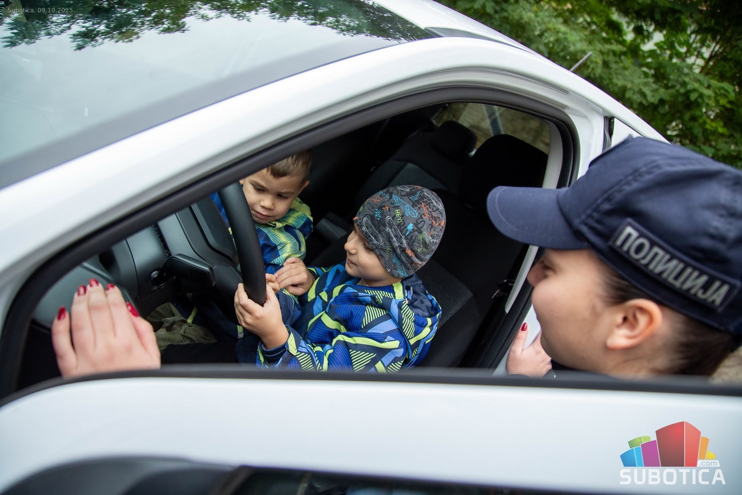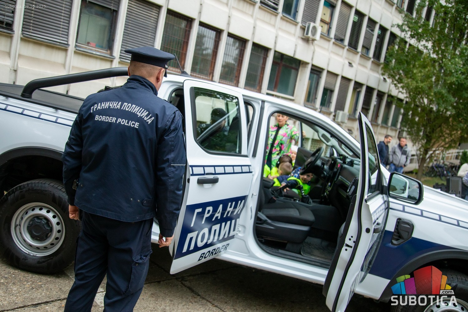 Prikaz tehničko-taktičke policijske opreme i službenih vozila deci predškoskih ustanova (plato ispred Policijske uprave Subotica na Segedinskom putu)