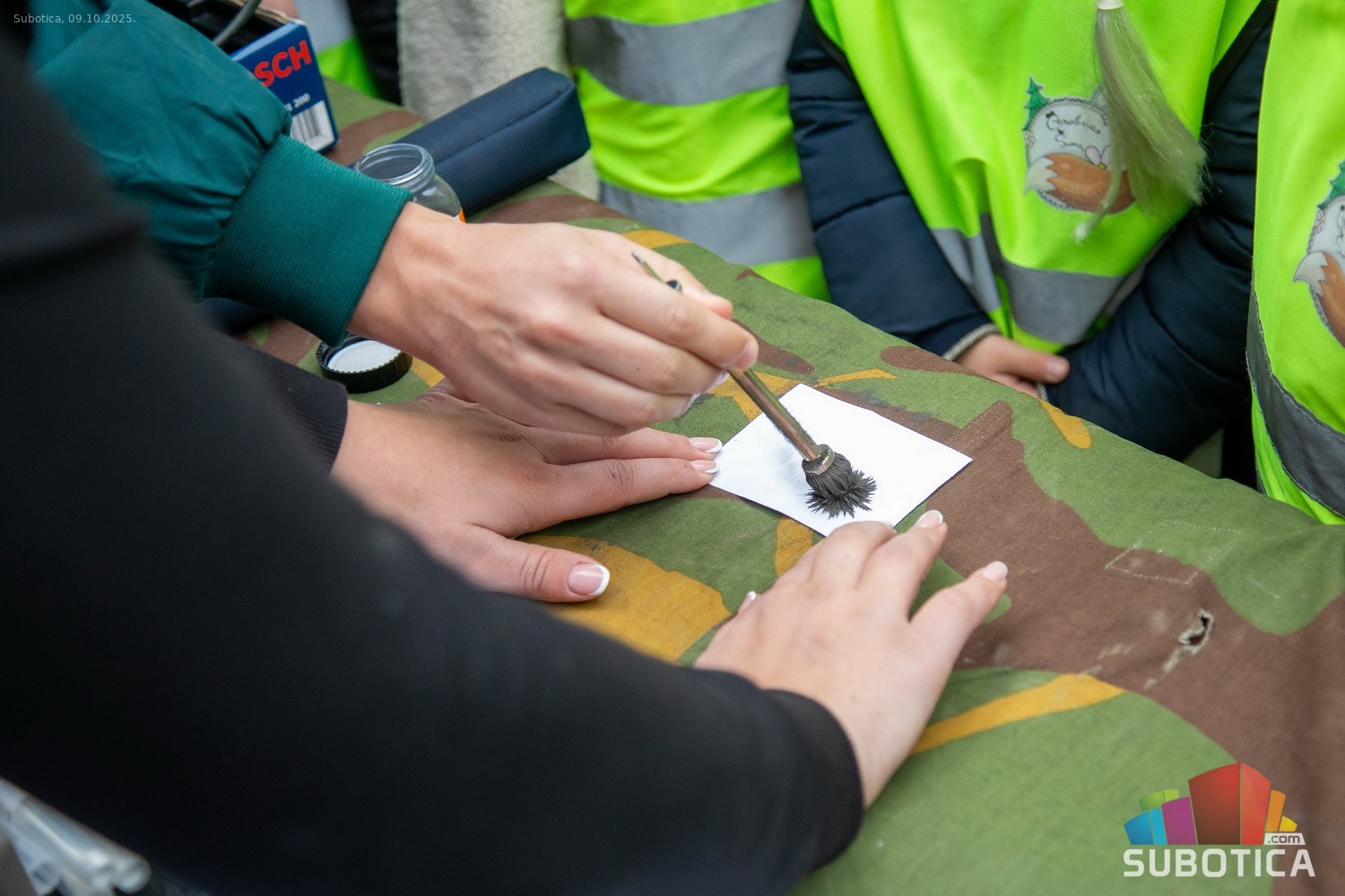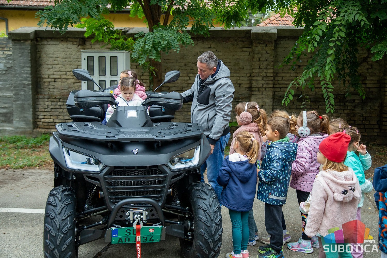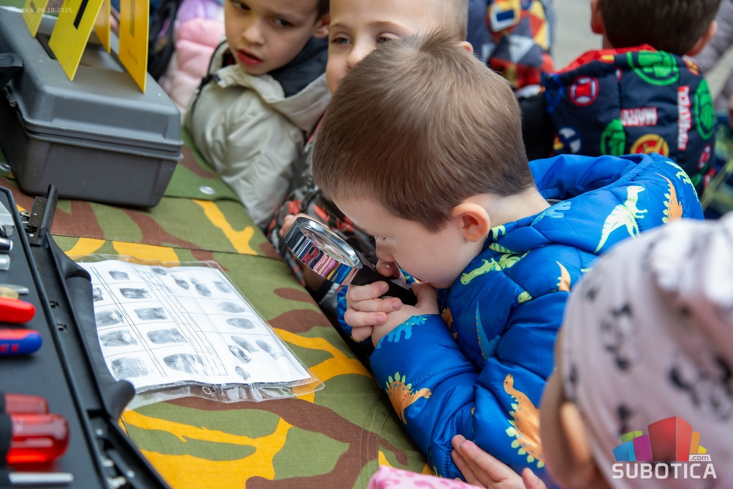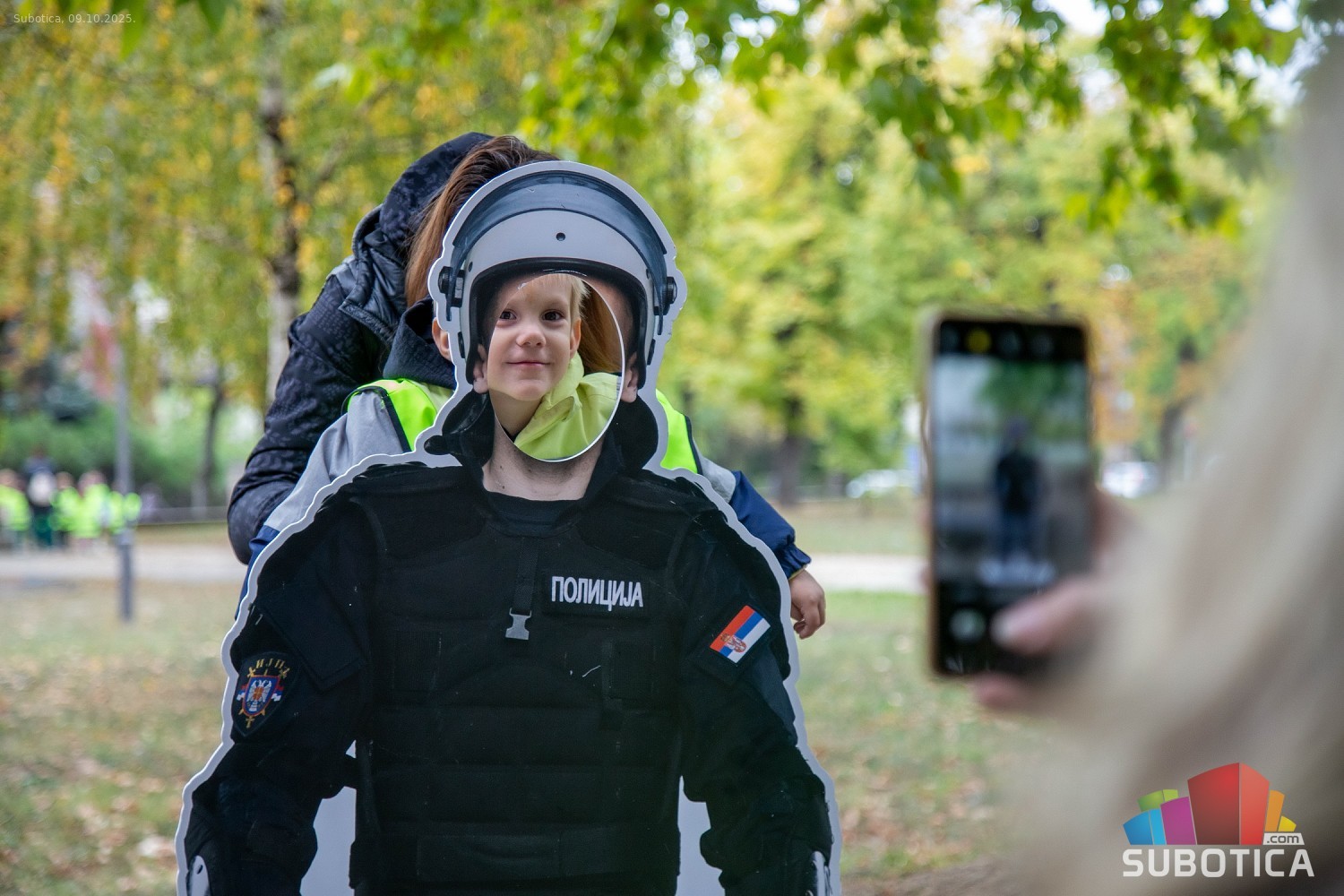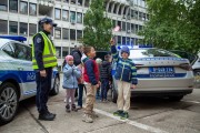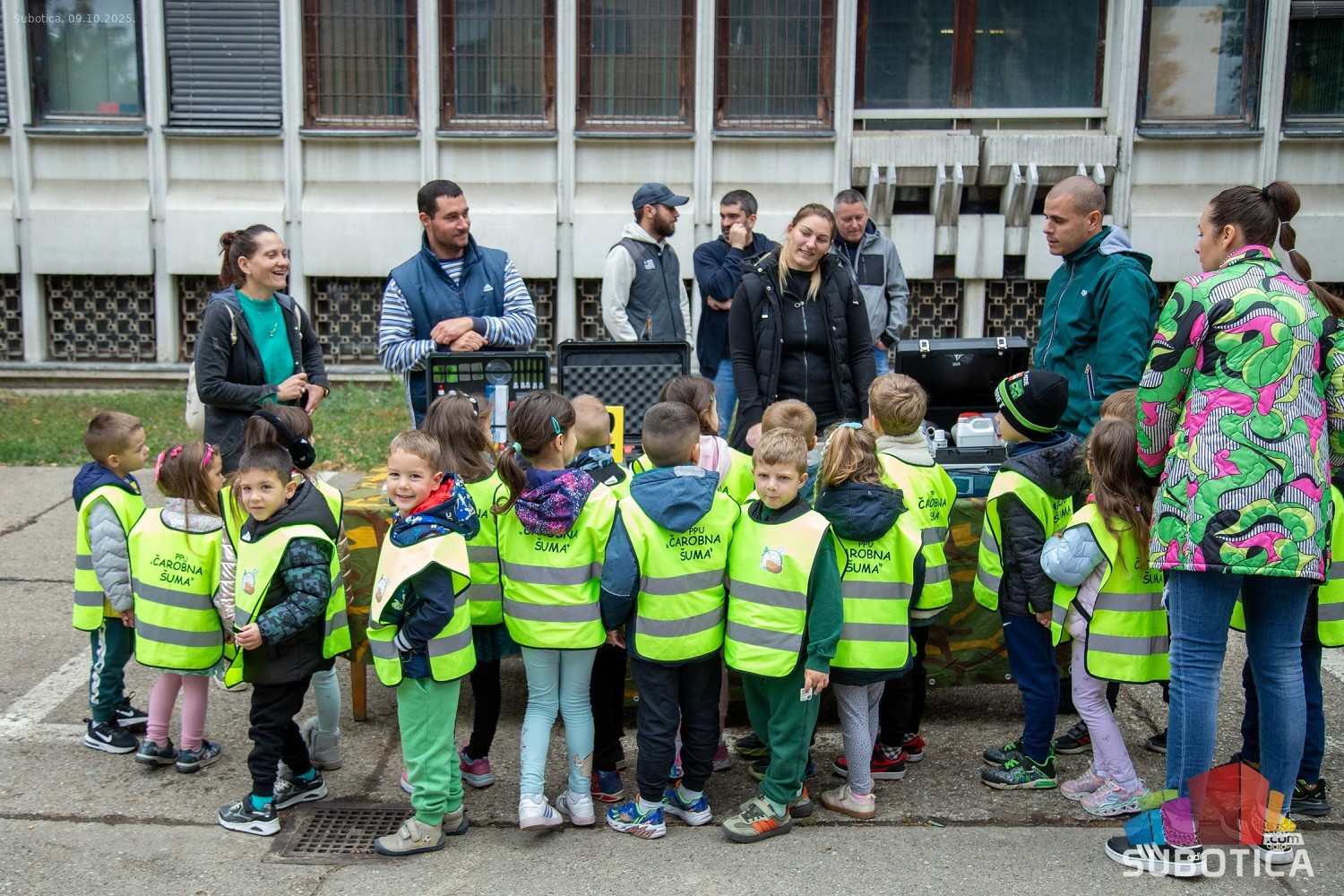 Prikaz tehničko-taktičke policijske opreme i službenih vozila deci predškoskih ustanova (plato ispred Policijske uprave Subotica na Segedinskom putu)