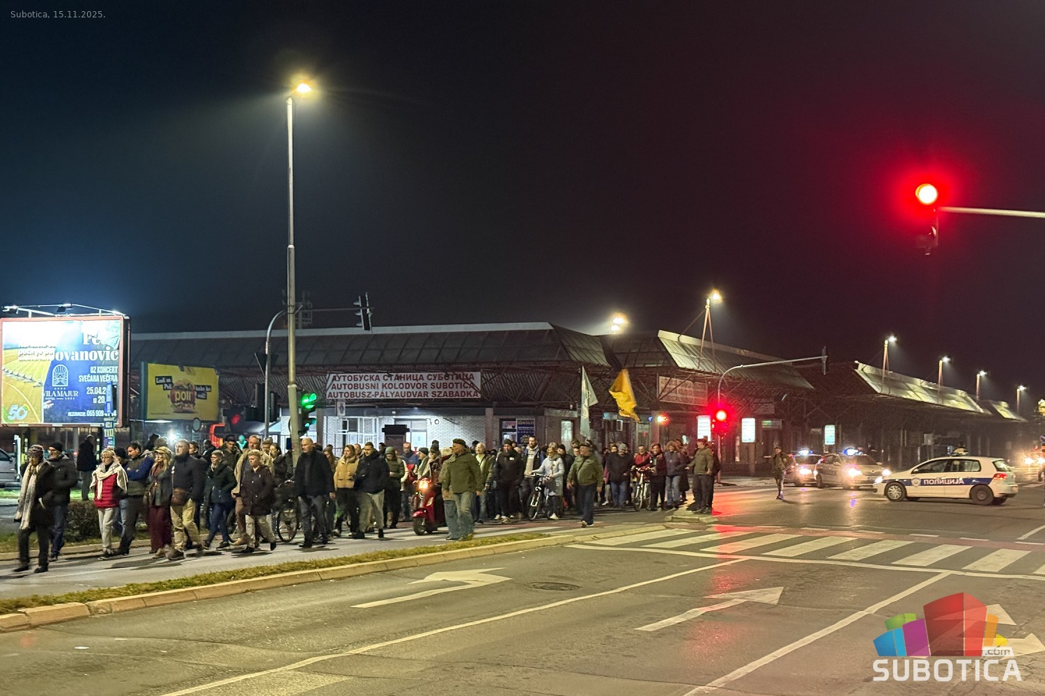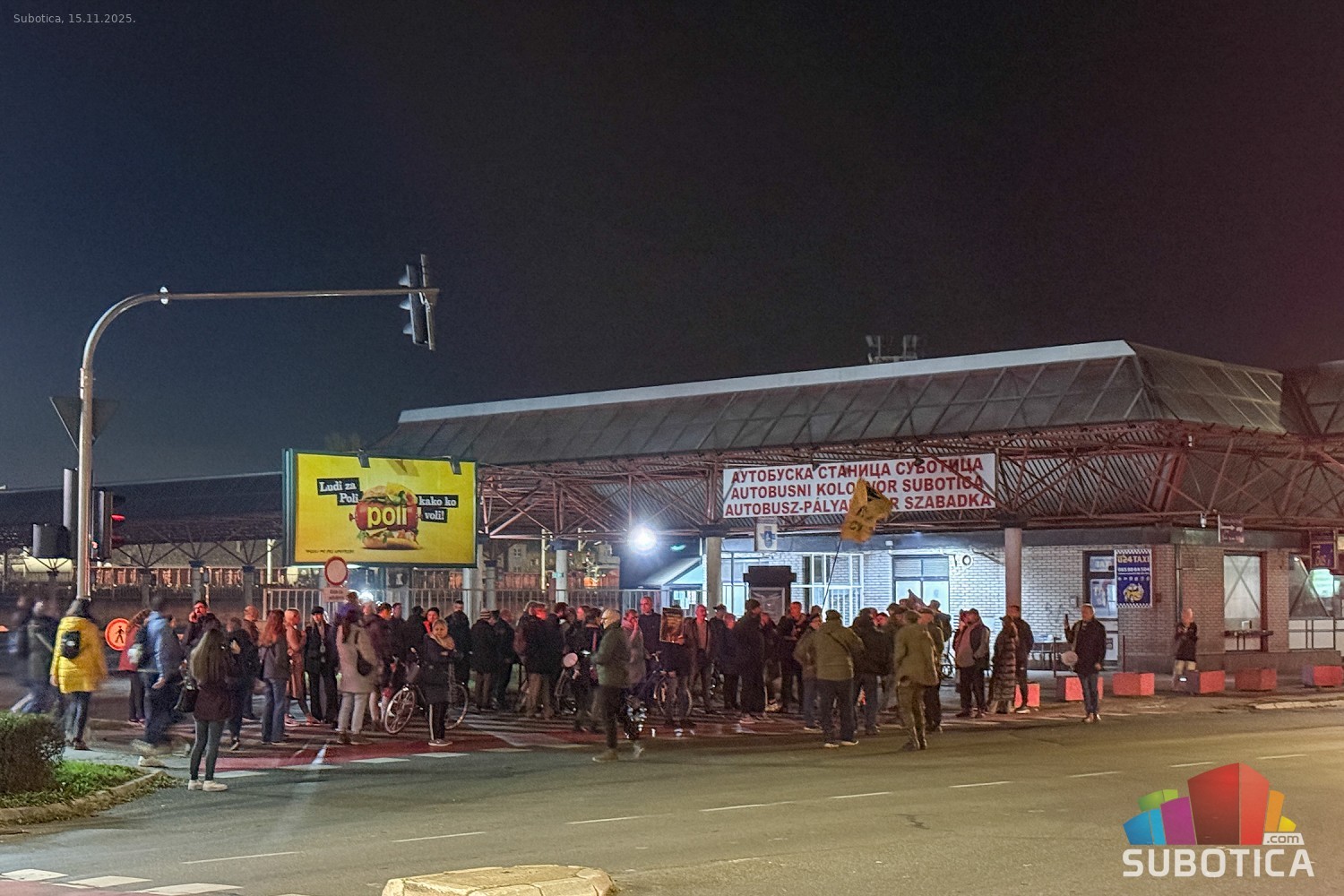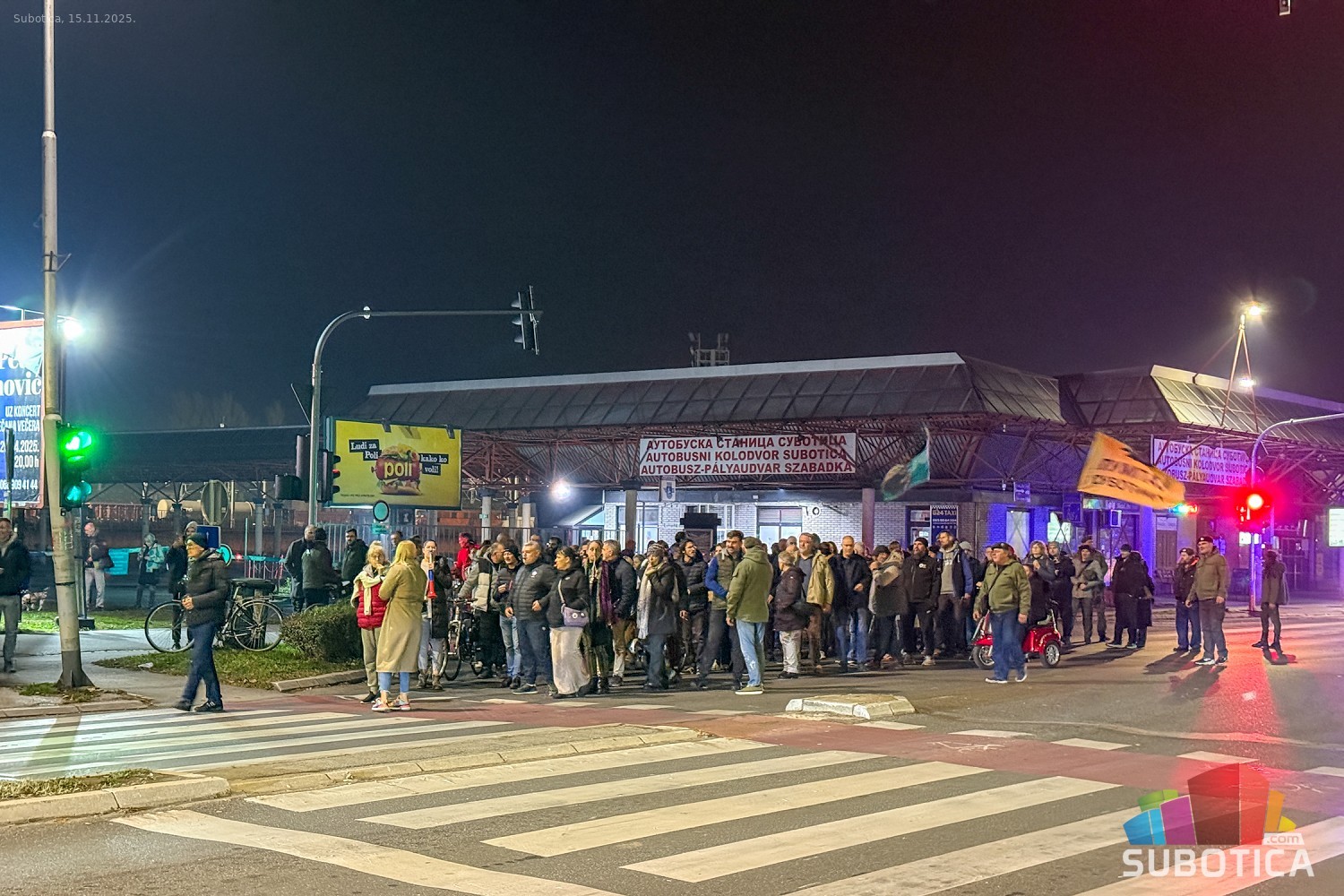 Protest 15. oktobar - blokada autobuske stanice i raskrsnice kod Nove opštine