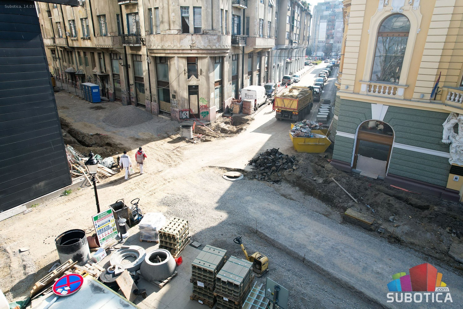 Radovi oko zgrade Narodnog pozorišta i kod biblioteke