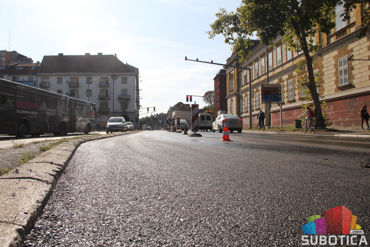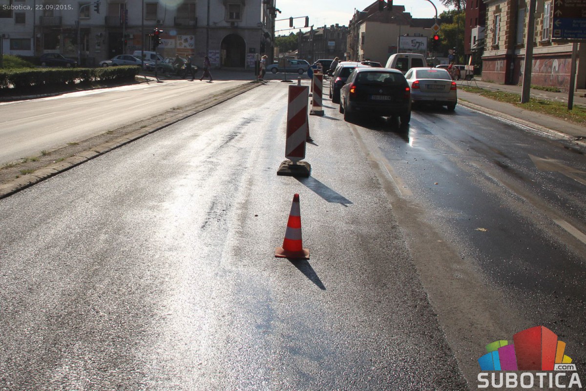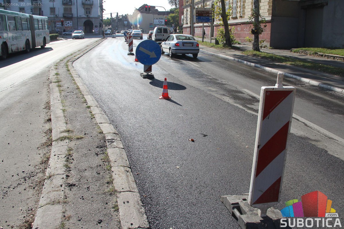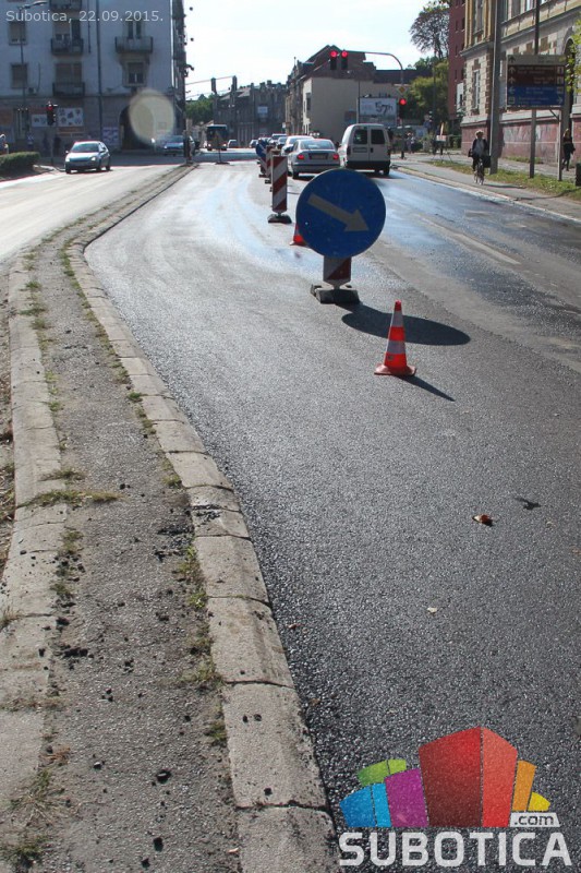 Asfaltirana traka za levo na raskrsnici kod Nove opštine iz pravca Palića