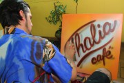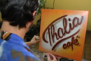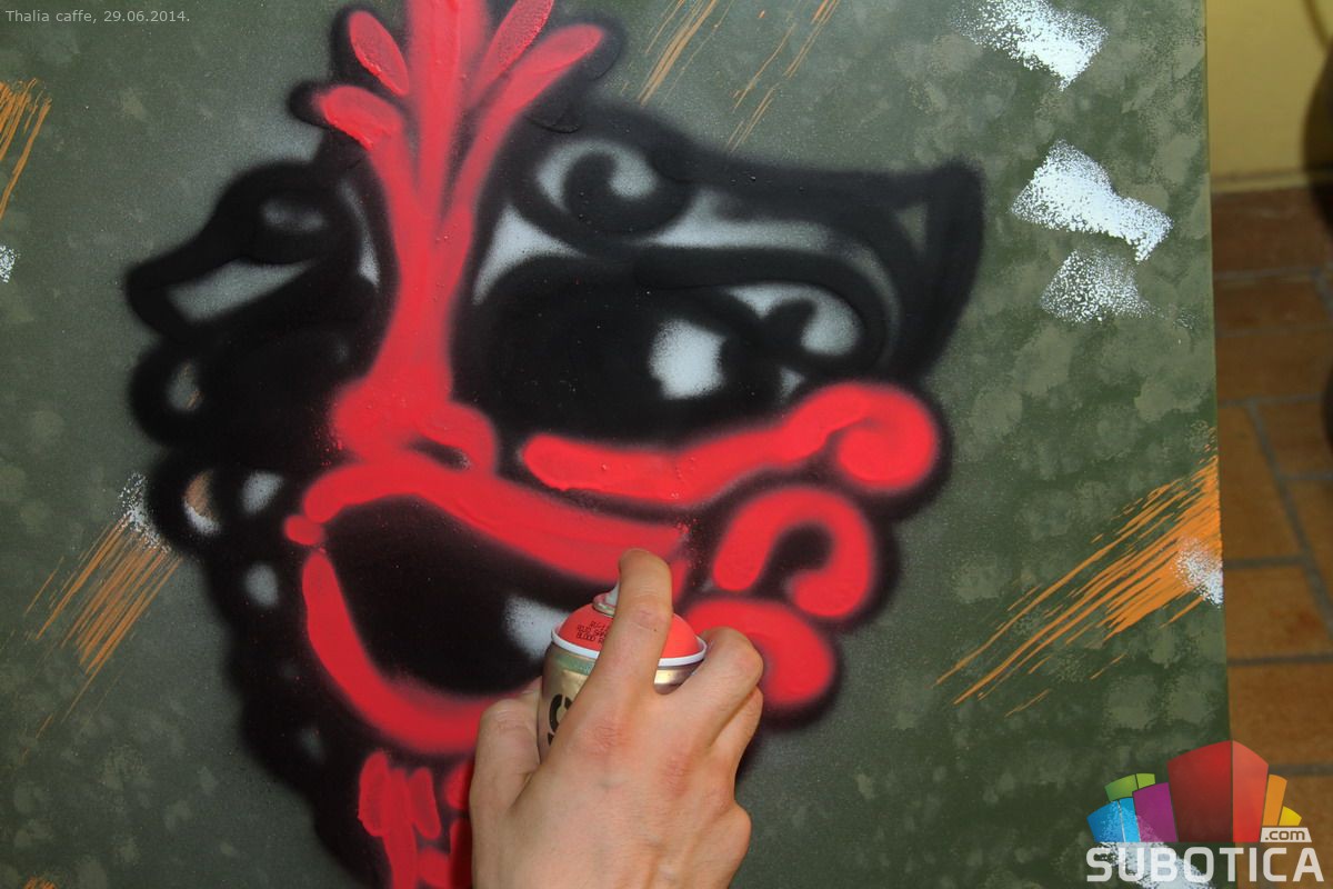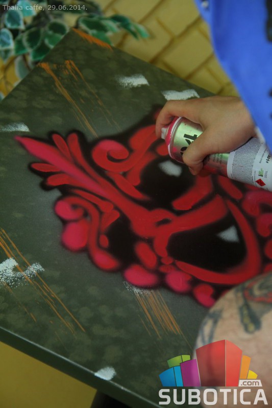 Unikatni grafitni stolovi u Thalia cafe-u