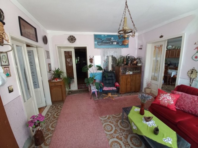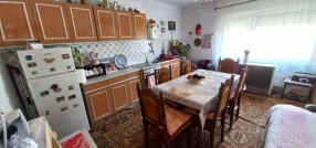 **Trosobna kuća sastoji se od tri sobe, velikog predsoblje, kuhinje, kupatilo i ostava. pov.132 m2. Dvorište je površine 482 m2. Grejanje TA peći.Keš kupovina, jer nije još garaža uknjižena, a biće...**