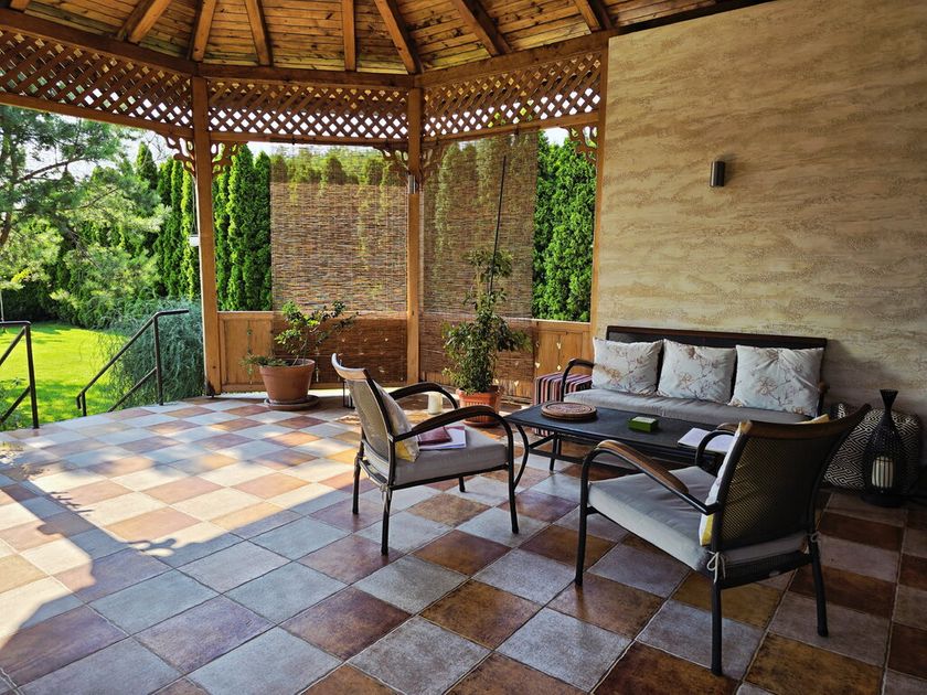 Za ljubitelje luksuza na umirujućoj, tihoj i sigurnoj lokaciji, na oko 5km od graničnog prelaza sa Mađarskom gde se nalazi aqua park Morahalom, na oko 9 km od aqua parka Palić i oko 15km od centra Subotice smeštena je kuća površine od 214m2 na placu 1867m2. Kuća je građena po principu sendvič zid a kompletno završena 2015. godine. Dodatno je termo izolovana sa 10cm stirodura a PVC prozori sa niskoemisionim staklima dodatno povećavaju energetsku efikasnost. Grejanje na toplotne pumpe sa bunarom dubine 125m čine grejanje vrlo ekonomičnim a trostruki industrijski filteri za vodu prečišćavaju do najvećeg kvaliteta pijaće vode. Opremljena je alarmnim i video nadzorom i optičkim internetom brzine 1TB. Na lepo uređenom dvorištu prostire se letnja terasa sa kuhinjom i bazenom a besperkoran travnjak se održava sa automatskim zalivnim sistemom.