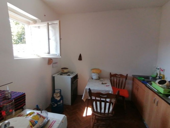 Prodaje se prizemna dvojna kuća površine 131m2 na placu površine 488m2. Kuća je građena od cigle sa klasičnom stolarijom, parketom na podovima i tavanicom na plafonu. Grejanje je na čvrsto gorivo, struja je trofazna, voda je gradska, moguć je priključak na gradsku kanalizaciju. Kuća poseduje 3 sobe, kuhinju, kupatilo i hodnik. Ispod kuće se nalazi podrum od 35 kvadratnih metara. U dvorištu se nalazi šupa. Ev.Br. 5558