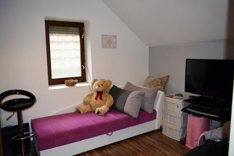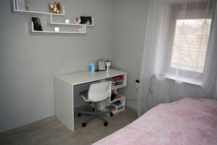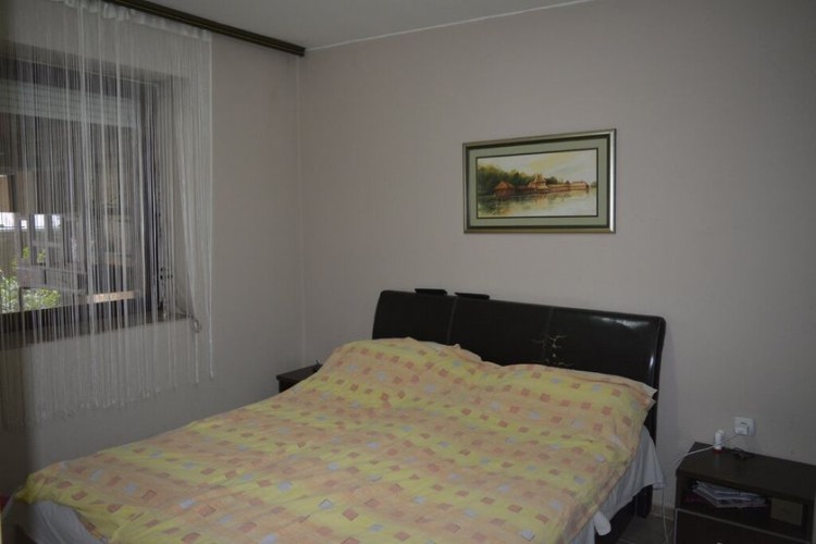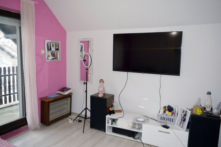 Kvalitetna spratna kuća u blizini centra ukupne površine 185m2 građena po principu sendvič zid. Sastoji se od prostranog dnevnog boravka sa kuhinjom i trpezarijom, dve spavaće sobe, kupatila i toaleta u prizemlju a još jedna spavaća soba sa izlazom na terasu i prostorija namenjena za kupatilo čine sprat. U suterenu se nalzi garaža, kotlarnice i još jedna prostorija koja se koristi kao ostava. Uz kuću je i lepa letnja terasa. Na podovima je keramika, prozori su drveni a grejanje je podno na pelet, čvrsto gorivo ili struju.