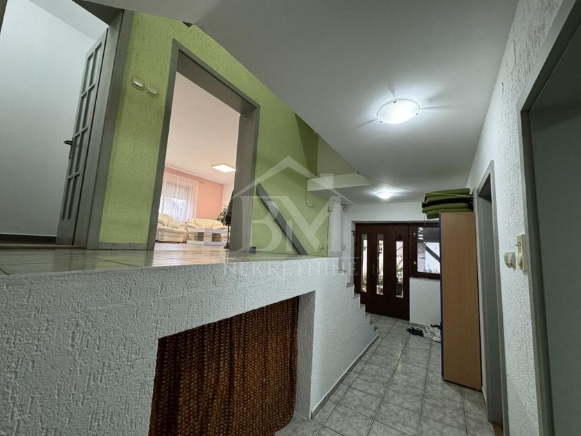 Prodaje se komforna, dvoetažna porodična kuća sa pažljivo uređenim dvorištem, na placu površine od 303m2. Kuća se nalazi u mirnoj asfaltiranoj ulici u naselju Centar II nedaleko od centra grada, autobuskog stajališta linije br.1, škole, ambulante, prodavnice, pošte, idealno za porodični život. Karakteristike nekretnine: Površina kuće (suteren, prizemlje, polusprat i potkrovlje): 185m2 Prostorije: suteren: prostrana garaža, radionica i kotlarnica, prizemlje: hodnik, prostrano i moderno opremljeno kupatilo, spavaća soba, stepenište koje vodi do suterena i polusprata: funkcionalna kuhinja, ostava, trpezarija, svetla i prostrana dnevna soba, toalet, sprat: dve spavaće funkcionalne sobe, prostor za kupatilo (sprovedene vodovodne cevi i instalacija) potkrovlje: spavaća soba i terasa. Opremljenost: Drvena kvalitetna stolarija sa alu roletnama na prozorima, pod je obložen keramikom i laminatom, betonska ploča na plafonu. Grejanje: podno grejanje na pelet, struju, čvrsto gorivo. Priključci:Trofazna struja, gradska voda i kanalizacija. U sklopu dvorišta se nalazi terasa. Kuća se prodaje sa ugradnim nameštajem. Papiri su uredni, vlasnik 1/1. Za više informacija ili dogovor oko pregleda, pozovite nas. Širu ponudu možete pogledati na sajtu agencije - bmnekretnine.rs