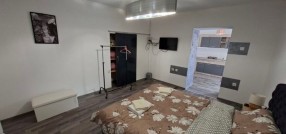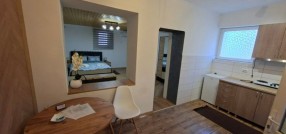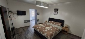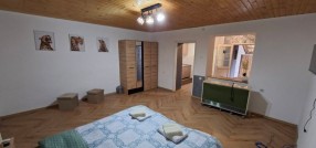 Subotica – Centar II, prodaje se veći deo (2/3) prizemne kuće sa dva zasebna komplet opramljena apartmana ukupne površine 95kvm koja se nalazi na placu površine 203kvm. Kuća je građena od mešanog materijala, adaptirana 2023 godine u odličnom useljivom stanju. Oba apartmana u svom sastavu poseduju: kuhinju sa trpezarijom, veću sobu i kupatilo. Mogućnost spajanja i prepravke u jedan trosobni stan sa dva kupatila. Prodaje se sa komplet nameštajem i uređajima! Komplet stolarija je PVC, na podovima je Tarket parket i keramika, grejanje je na struju sa dve inverter klime i TA peći, trofazna struja, gradska voda i kanalizacija. Mogućnost priključka na gas u ulici. U manjem dvorištu je nad krivena terasa sa malom dodatnom ostavom. Odlična lokacija na centralnom putu, svega 700m od centra grada, dobro kao investicija iznajmljivanja! Cena je FIKSNA! Red. br. 26-6