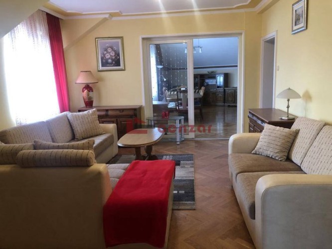 Porodična kuća koja se nalazi na atraktivnoj lokaciji u neposrednoj blizini centra grada.U prizemlju se nalaze tri sobe koje su prolazne ,trenutno pretvorene u kancelarije,kupatilo,kuhinja i sanitarni čvor.U potkrovlju se nalaze dva stana.Prvi stan površine 50m2 poseduje kuhinju,kupatilo,dnevnu sobu i spavaću sobu.Drugi stan površine 120m2 poseduje dve spavaće sobe,trpezariju,kuhinju,dnevni boravak,kupatilo i sanitarni čvor.Na podovima se nalazi parket i keramičke pločice,stolarija drvena i pvc,grejanje na gas.U sklopu kuće nalazi se garaža.Poseduje svu gradsku infrastrukturu.Prodaje se zajedno sa nameštajem i odmah je useljiva.