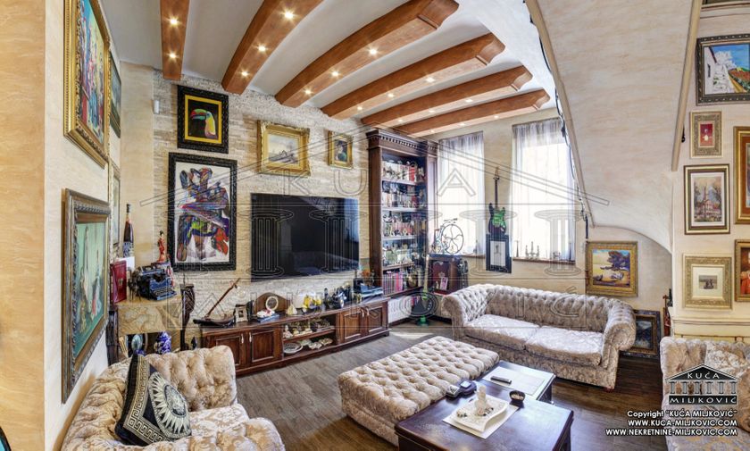 LUKSUZNA KUĆA U CENTRU SUBOTICE Materijal: Čvrst Dvorište: DA, samostalno sabazenom Nus prostorija: DA Izolacija: DA Sprat: 1+ Potkrovlje Kamere i Alarm: DA Klima: DA Grejanje: Podno Struja: Trofazna Voda: Gradska Kanalizacija: Gradska PTT: DA | CATV: DA Terasa: DA, velika Pod: Laminat, Pločice Tereti: NE Legalizovano: DA Plaćanje: Gotovina ili kredit Luksuzna spratna kuća sa bazenom se nalazi na manje od 1km od gradske kuće u Subotici. Ceo posed je oivičen visokim betonskim zidom koji pruža osećaj privatnosti i sigurnosti. U posed se može ući kolima na veliku kapiju ili peške na manju kapiju. Objekat je pod video nadzorom i sa ulične i sa dvorišne strane. Poseduje alarmni sistem sa 24-časovnim nadzorom. U dvorištu postoji prostor predviđen za parkiranje automobila, a ispred poseda sa ulične strane postoje 3 uređena parking mesta. Dvorište kuće je popločano granitom. U zadnjem delu dvorišta se nalazi bazen dubine od 1,1m do 1,5m a prima oko 50 kubika vode. U blizini bazena sa dvorišne strane se nalazi sanitarni čvor. U dvorištu se nalazi natkrivena terasa dimenzija 3,5m X 8m kojoj se osim iz dvorišta može pristupiti i iz kuhinje i trpezarije. Na terasi se nalaze baldahine, svetlo, ventilator od kovanog gvožđa u tri brzine. U blizini terase se nalazi zidani roštilj. U prizemni deo kuće se ulazi iz dvorišta. Sa ulaza se dospeva u predsoblje koje je opremljeno velikim kliznim plakarima za odeću i obuću. Iz predsoblja se može pristupiti u gostinski toalet i veliki dnevni boravak sa trpezarijom na koju se nadovezuje kuhinja sa špaizom. U dnevnom boravku se nalazi veliki LED tv. Iz dnevnog boravka se stepeništem može otići na potkrovni deo kuće. U potkrovnom delu kuće se iz predsoblja može pristupiti u tri spavaće sobe, jednu veliku garderobnu prostoriju i jedno kupatilo sa hidromasažnom kadom, tuš kabinom, wc šoljom i bideom. Kupatilo jednu odvojenu prostoriju predviđenu za mašine za pranje i sušenje veša. U kupatilu se takođe nalazi LED tv i priključak za digitalnu televiziju. U svakoj spavaćoj sobi postoji LED tv sa priključkom na digitalnu tv. Izolacija na kući je odrađena sendvič zidovima (nova cigla+kamena vuna+stari format cigle), kao i sa 10cm stiropora + 5cm stirodura. Krov je pokriven Tondach biber crepom, izolacija 25cm staklene vune, paropropusna Würth folija, kao i zeleni gips protiv prokišnjavanja i vlage. Kompletna spoljna stolarija je šestokomorni PVC teksture zlatnog hrasta punjen Argonom sa troslojnim Švajcarskim Rehau staklima. Grejanje celokupne kuće je na struju, sa podnim grejnim telima. U svim podovima je postavljena paropropusna i vodonepropusna folija. Kompletni podovi u kući su Tarkett od 1,2cm i granit namenjeni za podno grejanje. Kuća ima energetski pasoš A. Unutrašnja stolarija, ugradni plakari i kuhinja su unikatni, rađeni po meri od Patiniranog hrasta. Sve ograde i rukohvati u kući su od kovanog gvožđa obloženog hrastom. Svi unutrašnji zidovi kuće su kameni zid “Travertino”. Kuća se prodaje sa kompletnim nameštajem i tehnikom.
