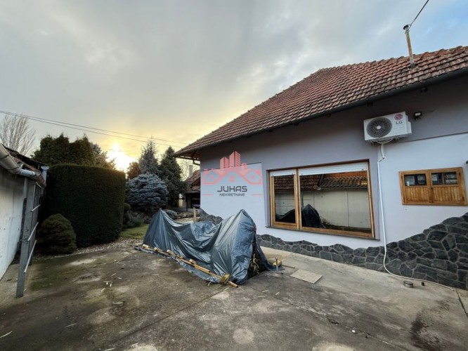 Prodaje se prostrana, prizemna porodična kuća površine 117 m², smeštena na lepo uređenom placu od 668 m², idealna za miran i komforan život. Kuća je samostalna i građena od čvrstog materijala. Pri samom ulazu nalazi se veliki stakleni prostor koji služi kao zimska bašta i predsoblje, ispunjen prirodnim svetlom i prijatnom atmosferom. Sa desne strane ulaza nalazi se gostinjska soba, dok se pravo ulazi u prostran dnevni boravak povezan sa velikom kuhinjom i trpezarijskim delom. U nastavku se nalazi praktičan špajz. Kuća poseduje i veliku spavaću sobu, kupatilo sa kadom i tuš kabinom, kao i poseban toalet. Stolarija je drvena, ručno rađena, sa troslojnim staklima. Grejanje je etažno na čvrsto gorivo, struju i toplotne pumpe, a u ulici postoji i priključak za gas. Ugrađen je i klima uređaj. Kuća je priključena na gradsku vodu i kanalizaciju, a poseduje trofazni priključak sa dva brojila. U dvorištu se nalaze letnja kuhinja, vešernica, kotlarnica i dve ostave, što pružaju dodatnu funkcionalnost. Ispred kuće, uz stazu koja vodi do ulaza, nalazi se lepo uređen vrt sa ukrasnim biljkama. Ova nekretnina nudi odličan spoj komfora, funkcionalnog rasporeda i prijatnog dvorišta, idealnog za porodični život. Ne propustite priliku – pozovite i zakažite razgledanje.