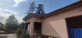 Prodaje se samostalna porodična kuća na Hajdukovo u asfaltiranoj i mirnoj ulici, blizu jezera na placu od 1919m2. Kuća je od mešanog materijala, ima 193m2 u bruto površini. Sastoji se od terase, hodnika, ostave, kupatila i tri sobe. Pored objekta je ostava za voće, garaža i podrum. Stolarija je klasična drvena, voda je iz bušenog bunara dubine 45 metara, kanalizacija je priključena na sopstvenu septičku jamu, struja je monofazna, grejanje je na kaljeve peći. Podovi su keramičke pločice, brodski pod i beton. Pored glavnog objekta je pomoćni objekat koji ima 67 m2 u bruto površini, građena od opeke. Sastoji se od letnje kuhinje i ostava za voće. U dvorištu ima još čardak, nastrešnica za mašine, velika garaža za kamion. Vlasnik 1/1 CB nekretnine, Subotica Br. u registru posrednika: 1390