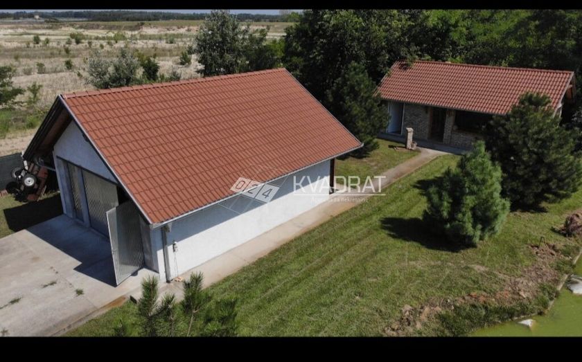 Subotica - Kelebija, prodaje se kuća površine 80kvm na placu površine 10.872kvm. Poljoprivredno gazdinstvo je kompletno ograđeno ogradom i postoje dve kapije u širini od po 9m. Kuća je građena od čvrste cigle, sendvič zidovi. Kuća se prodaje kompletno opremljena, sa svim nameštajem i belom tehnikom. U cenu su takođe uključeni traktor, kazani za rakiju od 200l i 100l, kosilica, potpuno nova freza, samohodna kosilica trimer, sistem za navodnjavanje kap po kap, takođe postoje i prskalice na travi. Kuća u svom sastavu poseduje: u prizemlju površine 60kvm se nalaze: dnevna soba sa trpezarijom, kuhinja, hodnik i kupatilo, dok se na spratu površine 20kvm nalazi galerija i kupatilo. Grejanje u kući je na gas,trofazna i dvotarifna struja, tri bušena bunara i dve septičke jame. Poljoprivredno gazdinstvo je opremljeno video nadzorom i alarmom. Od dodatnih prostorija postoje dve terase, jedna je površine 45kvm dok je druga 20kvm. Jedna terasa ima pečenjaru. Terasa površine45kvm može da se zatvori prozorom od pleksiglasa. Takođe postoje i pecara površine 52.5kvm, podrum površine 48kvm kao i garaža površine 48kvm. U dvorištu se takođe nalazi ribnjak površine 10x20 i 600 stabala u punom rodu. Do pecare vodi kamionski prilaz od grebanog asfalta. Poljoprivredno gazdinstvo se nalazi dovoljno daleko od industrije i ostalih zagađivača tako da vam omogućava život u zdravijoj i mirnijoj okolini, takođe je idealno za bavljenje voćarstvom ili etno turizmom. Do poljoprivrednog gazdinstva vodi grebani asfalt. Red. br. 23-54