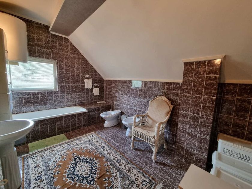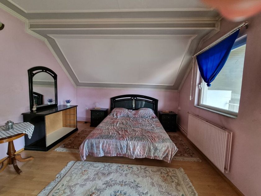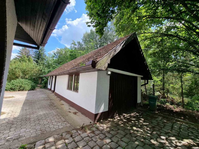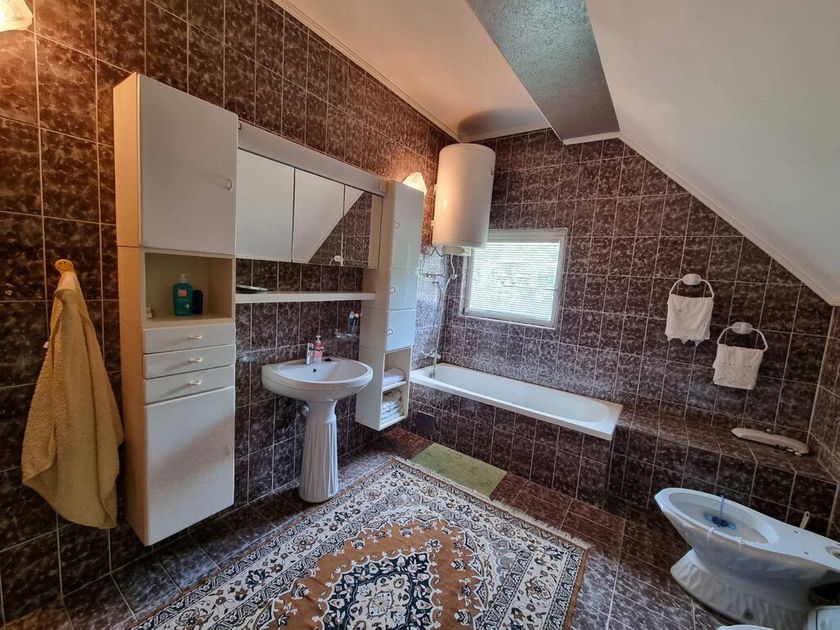 Na mirnoj lokaciji okružena šumom, prodaje se porodična kuća od 270m2 sagrađena 1992. godine. Smeštena na perceli od 1337m2 na koji se nalazi i pomoćna zgrada od 35m2 gde su garaža, letknja kuhinja i malo kupatilo. Na prizemlju se nalazi velik dnevni boravak, kuhinja sa trpezarijom koja izlazi na veliku terasu sa roštiljem, špajz, manja soba i kupatilo. Kružnim stepenicama se ide na sprat gde su tri spavaće sobe koje imaju terase i veliko kupatilo. Na podovima je parket, prozori su drveni, a grejanje je centralno na čvrsto gorivo. Ispod kuće se nalazi podrum sa kotlarnicom (peć je nova).
