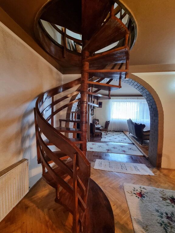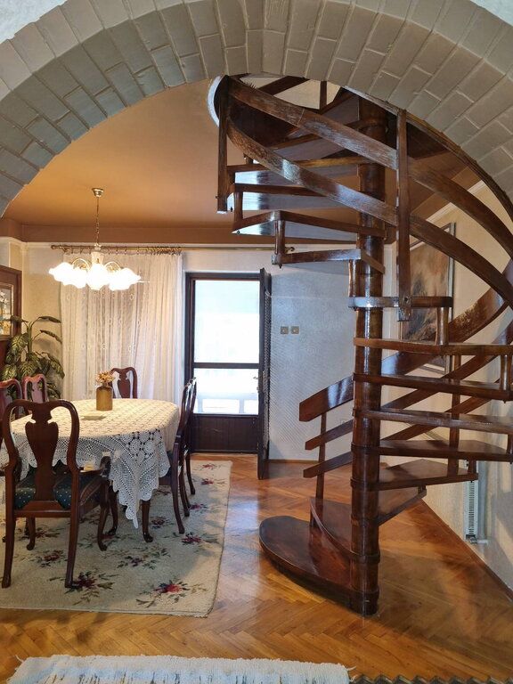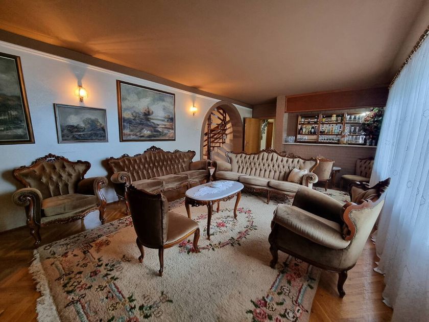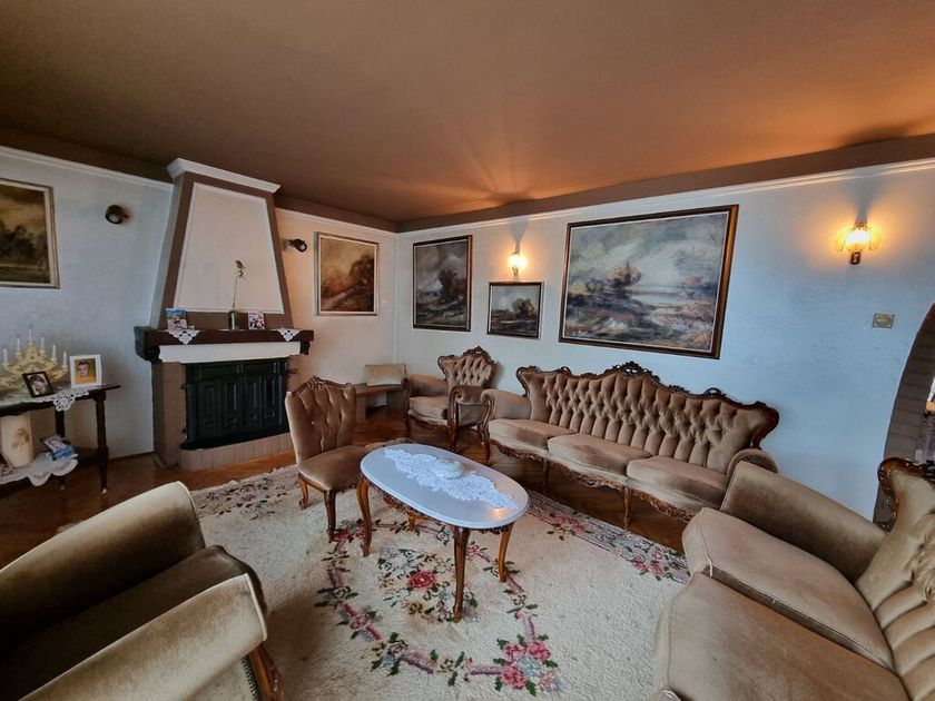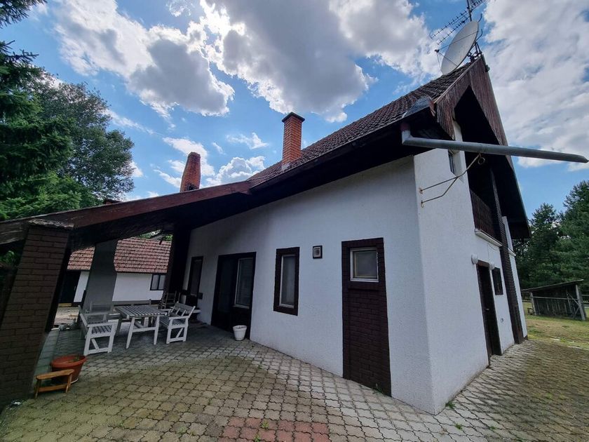 Na mirnoj lokaciji okružena šumom, prodaje se porodična kuća od 270m2 sagrađena 1992. godine. Smeštena na perceli od 1337m2 na koji se nalazi i pomoćna zgrada od 35m2 gde su garaža, letknja kuhinja i malo kupatilo. Na prizemlju se nalazi velik dnevni boravak, kuhinja sa trpezarijom koja izlazi na veliku terasu sa roštiljem, špajz, manja soba i kupatilo. Kružnim stepenicama se ide na sprat gde su tri spavaće sobe koje imaju terase i veliko kupatilo. Na podovima je parket, prozori su drveni, a grejanje je centralno na čvrsto gorivo. Ispod kuće se nalazi podrum sa kotlarnicom (peć je nova).