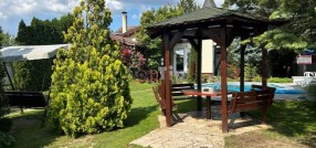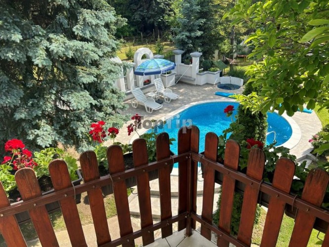 Četvorosobna porodična kuća na lepo uređenom placu površine 1071 m2. Kuća po strukturi ima tri nivoa podrum, prizemlje i potkrovlje i kvalitetne je gradnje. Podrumski prostor čine tri prostorije ukupne korisne površine 29 m2 - kotlarnica i dve ostave; u prizemnom delu kuće čija je korisna površina 111 m2 nalaze se predsoblje, kuhinja, trpezarija, silaz u podrum, dnevna soba, kupatilo, hodnik sa stepeništem, spavaća soba i prelepa terasa sa pogledom na celo dvorište; u potkrovlju čija je ukupna korisna površina 68 m2 nalazi se predsoblje, hodnik, kupatilo, dve spavaće sobe sa terasama. Stambeni objekat se snabdeva vodom iz bunara, dok je odvod otpadnih voda rešen preko septičke jame na predmetnoj parceli. Ceo objekat je hidro i termo izolovan. Grejanje je etažno na čvrsto gorivo i na struju, podovi su obloženi laminatom i keramikom, spoljna stolarija je PVC. Pored kuće na parceli se nalaze još dva pomoćna objekta od kojih se jedan koristi kao garaža za dva automobila. Dvorište je izuzetno lepo uređeno, sa predivnim rastinjem, cvećem, borovima, bazenom i ostalim prelepim sadržajima i detaljima. Ceo ambijent je sam po sebi idiličan, blizu je grada, a opet dovoljno udaljeno da pruža savršeno mesto za odmor.