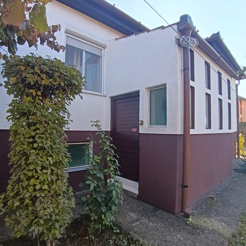 Ker, kuća 135m2, grv, grk, trofazna struja, čvrsta gradnja, parket, pločice, gasno grejanje, stolarija drvena sa roletnama, kuća ima dva ulaza, tri odvojene sobe, hodnik, kupatilo, kuhinja sa trpezarijom i ostavom. Suteren 2s stan, sa kuhinjom, kupatilom, dve odvojene sobe