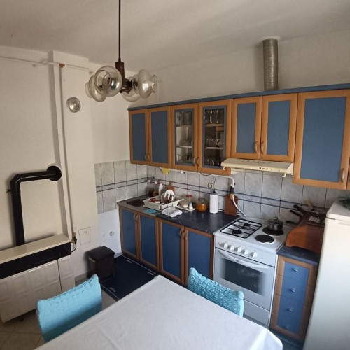 Ker, kuća 135m2, grv, grk, trofazna struja, čvrsta gradnja, parket, pločice, gasno grejanje, stolarija drvena sa roletnama, kuća ima dva ulaza, tri odvojene sobe, hodnik, kupatilo, kuhinja sa trpezarijom i ostavom. Suteren 2s stan, sa kuhinjom, kupatilom, dve odvojene sobe