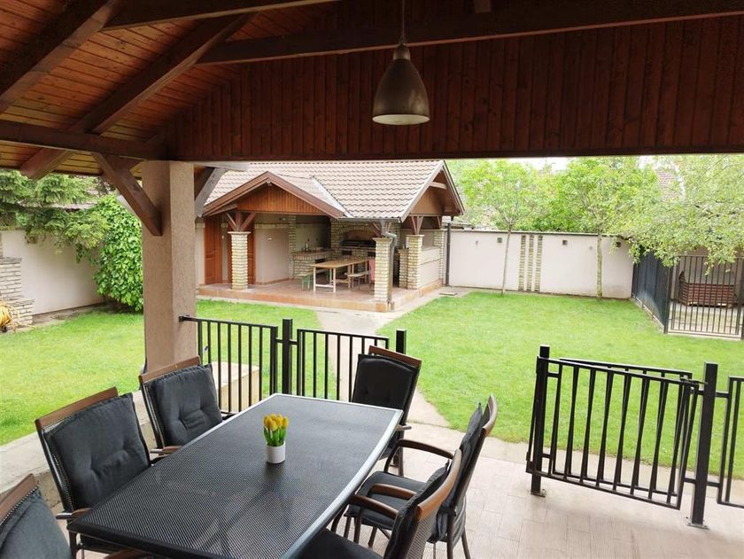 Prodaje se kuća na 640 m2 ograđenog placa u atraktivnom delu grada. 221 m2 stambenog prostora. Garaža za dva automobila sa panelnim vratima. Toplotna pumpa za podno grejanje i klimatizaciju. Gas za podno grejanje i sanitarnu vodu. Solarni paneli i elektricna energija za sanitarnu. Prizemlje: Veliki dnevni boravak sa trpezarijom od 60 m2 i kaminom,kuhinja sa ugradnim elementima i ostavom, spavaca soba, kupatilo, toalet za goste, velika terasa okrenuta na jug. Sprat: tri spavace sobe, ugradni garderoberi,veliki prostor za sportske aktivnosti, kupatilo sa saunom. Poseban objekat u dvorištu sa pomocnom prostorijom i toaletom, terasom za rostilj. Natkriveni boks za velikog psa. Sistem za zalivanje travnjaka.