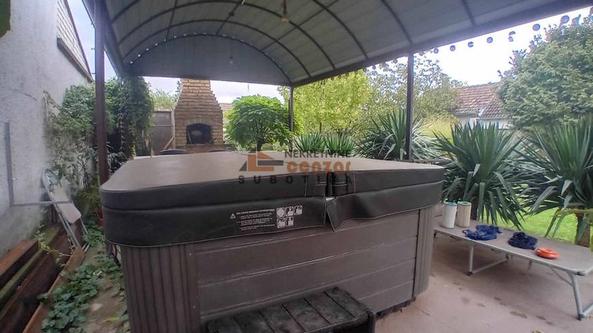 Prodaje se petosobna kuća u naselju Kertvaroš, u blizi centra grada. Građena je u tri nivoa. U prizemlju je veliki dnevni boravak sa trpezarijom i izlazom na natkrivenu terasu, kuhinja, jedna spavaća soba, soba za garderobu i gostinski toalet. Na drugom nivou je veliko kupatilo i tri spavaće sobe. U suterenu je skladišni prostor i garaža. Na tavasnu je betonska ploča i može se urediti kao dodatni stambeni prostor. U dvorištu je natkrivena terasa u kojoj je smešten đakuzi. Pored kuće je natkriveno parking mesto. Dvorište je prostrano, ograđeno i lepo uređeno. Svi priključci su gradski.