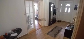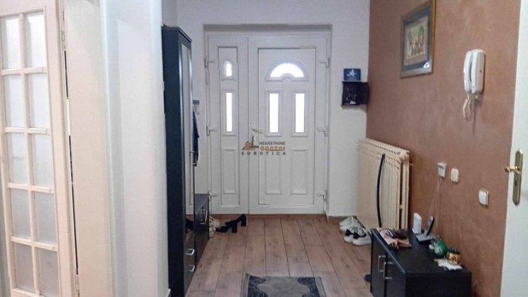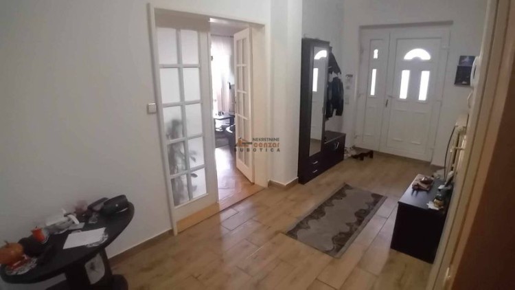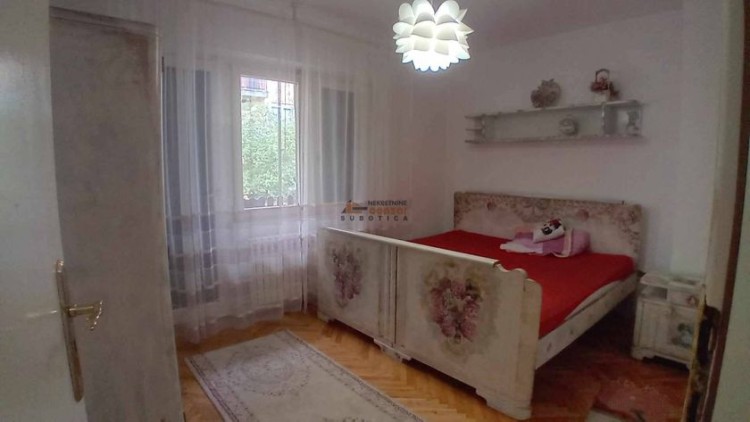 Prodaje se petosobna kuća u naselju Kertvaroš, u blizi centra grada. Građena je u tri nivoa. U prizemlju je veliki dnevni boravak sa trpezarijom i izlazom na natkrivenu terasu, kuhinja, jedna spavaća soba, soba za garderobu i gostinski toalet. Na drugom nivou je veliko kupatilo i tri spavaće sobe. U suterenu je skladišni prostor i garaža. Na tavasnu je betonska ploča i može se urediti kao dodatni stambeni prostor. U dvorištu je natkrivena terasa u kojoj je smešten đakuzi. Pored kuće je natkriveno parking mesto. Dvorište je prostrano, ograđeno i lepo uređeno. Svi priključci su gradski.