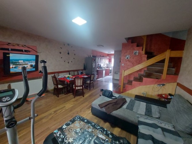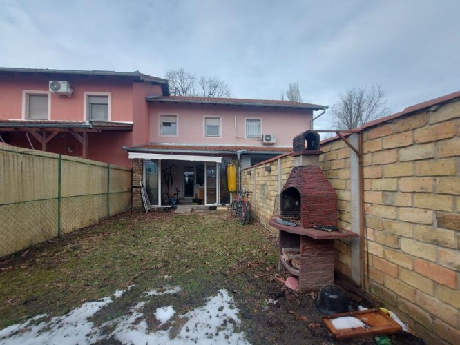 Prodaje se kuća u naselju Kertvaroš. U pitanju je kuća u nizu , uknjižena, sa urednom dokumentacijom i vlasništvom. Okolina je mirna i nalzi se u blizini vrtića i osnovne škole i prodavnica. Udaljenost od centra je do 2 km. Grejanje je gasno sa radijatorima. Kuća se sastoji iz dve etaže. Na prvoj etaži se nalazi predsoblje, toalet, špaiz, prostorija za kotao za gas, kuhinja koja je spojena sa trpezarijom i velikim dnevnim boravkom koji ima izlaz na terasu veličine dodatnih 15m2 koja je u potpunosti zastakljena. Na spratu se nalazi hodnik, kupatilo i tri spavaće sobe od kojih jedna ima i terasu. Iz hodnika je dostupan i ulaz na tavan. Podovi su keramika, laminat i parket. Spoljna stolarija je PVC. Voda i kanalizacija su gradski. Struja trofazna sa dvotarifnim brojilom. Demit fasada 10 cm. Zadnje dvorište je ograđeno zidanom ogradom i površine je 50m2 sa zidanim roštiljem. Prednje dvorište je manje i iznosi oko 20m2. Kuća se prodaje sa kuhinjskim elementima, šporetom i mašinom za sudove. Više informacija na telefon 065/2296692