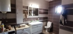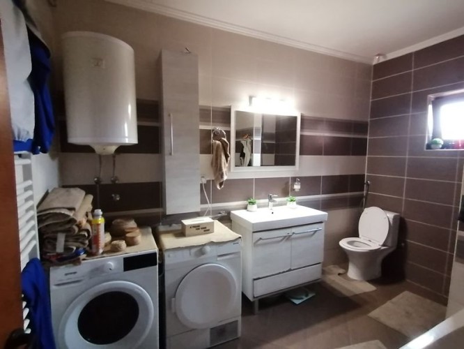 Na prodaju prizemna samostalna kuća novije gradnje, trosobna, površine 115 m², na placu od 15.158 m². Građena od cigle, sa PVC stolarijom i parketom na podovima. Visina plafona 2.60 m, betonska ploča. Kuća se prodaje nameštena sa stvarima, poseduje klimu, alarmni sistem, video nadzor i interfon. Grejanje etažno na čvrsto gorivo (pelet), trofazna struja sa dvotarifnim brojilom. Na placu se nalaze dva bunara (58 m i 130 m), septička jama, telefon, demit fasada (10 cm). Asfaltni put udaljen oko 2000 m. Postoji mogućnost kupovine samo kuće sa placem od 2268 m². Ev. Br. 5740