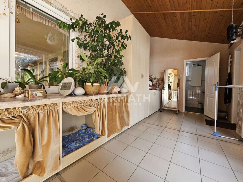 Prodaje se prizemna kuća 206m², na placu od 1367m², sa dodatnim objektom od 330m², koji se koristi kao magacin i radionica. Nalazi se na Makovoj sedmici, uvučena 70m od glavnog puta u mirnom delu ulice Majšanski put. Opis nekretnine: Sastoji se od: -Stambeni prostor: 206 m² -Ulazni prostor -Kancelarija -Spavaće sobe: 3 -Dnevna soba: Velika i svetla sa izlazom na zatvorenu terasu na kojoj se nalazi i radna soba -Kuhinja sa trpezarijom koja ima izlaz na zatvorenu terasu -Ostava -2 kupatila Tehničke karakteristike: -PVC prozori sa komarnicima -PVC vrata -Garaža i magacinski prostor površine 330m² -Grejanje: -Centralno, toplotne pumpe voda-vazduh (može na struju i na drva), energetski efikasne i ekološke. -Inverter klime -Podovi: Parket i pločice Dvorište: -Prostrano, savršeno za odmor i aktivnosti na otvorenom. -Parking: Osiguran u drugom dvorištu. Dodatni sadržaji: -Bazen 39m², -2 bušena bunara na 46m i 130m -Alarm i video nadzor -Inverter klime: 5 Kuća je građena od čvrstog materijala- cigle. Obložena je stiropor izolacijom 15cm, a tavanski prostor je betonski i obložen stiropor cementom 50cm. Radionica i magacin : -Površine 330m², sa podnim grejanjem, pločicama, PVC stolarijom, dodatnim toaletom, pristup iz kuće i iz dvorišta na dvoje rolo vrata (od kojih su jedna automatizovana), odlični za sve vaše projekte i skladištenje. Ova nekretnina nudi sve što vam je potrebno za savršen porodični život i idealna je za one koji žele udobnost, privatnost i stil, kao i za različite poslovne delatnosti. Papiri uredni. Video: youtu.be/36psoiuyZlM Za više informacija posetite naš sajt preko sledećeg linka: harmathnekretnine.rs/detalji-nekretnine/282 ili pozovite na označeni kontakt telefon.
